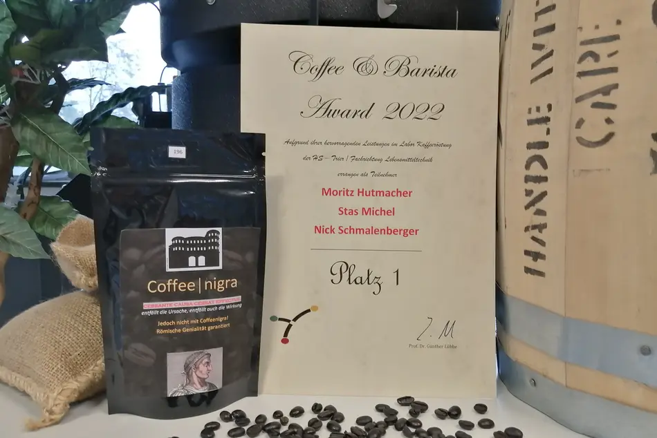 Im Laborversuch „Kaffeeröstung“ der Drittsemester des Studiums Lebensmitteltechnologie war technologisches und sensorisches Geschick gefragt, einen „Roast“ auf dem Trommelröster zu fahren, der insbondere den Geschmack der Erstsemester-Studierenden der Fachrichtung trifft, die traditionell die Jury stellen. In der verdeckten sensorischen Verkostung wurden die Kompositionen nach einem Punktesystem bewertet. Ebenfalls wurden weitere Punkte für die kreative Gestaltung der Etiketten vergeben. In diesem Jahr war das Bewerberfeld so eng, dass zweimal der 3. Platz vergeben wurde.