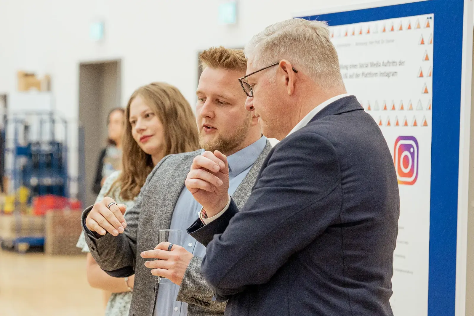 Studierende stellten am 24.05.2023 ihre Bachelor- und Masterarbeiten aus verschiedenen Fachbereichen in der Aula am Schneiderhof vor. Die Themen erstreckten sich von Gestaltungsthemen zu technischen Untersuchungen, Informatikexpertisen sowie umweltrechtlichen Schwerpunkten. Das Dou, bestehend aus Präsidentin und Vizepräsidentin für Studium und Lehre der Hochschule Trier, Prof. Dr. Dorit Schumann und Prof. Dr. - Ing. Beate Massa, moderierten die Veranstaltung.
