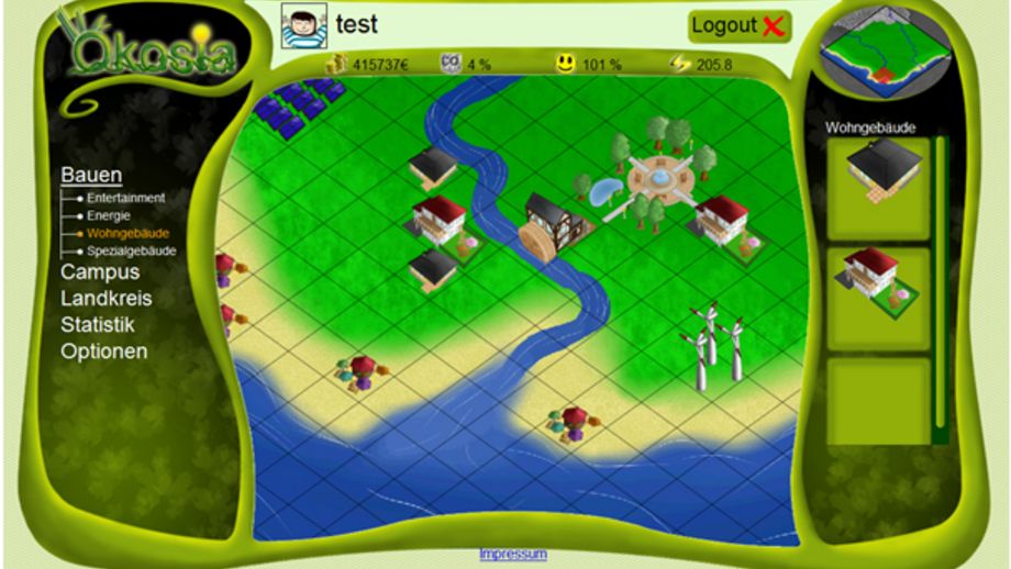 Im Sommersemester 2011 befassten sich 7 Bachelor-Studenten mit der (Weiter-)Entwicklung des Browsergameprototyps „Ökosia“.