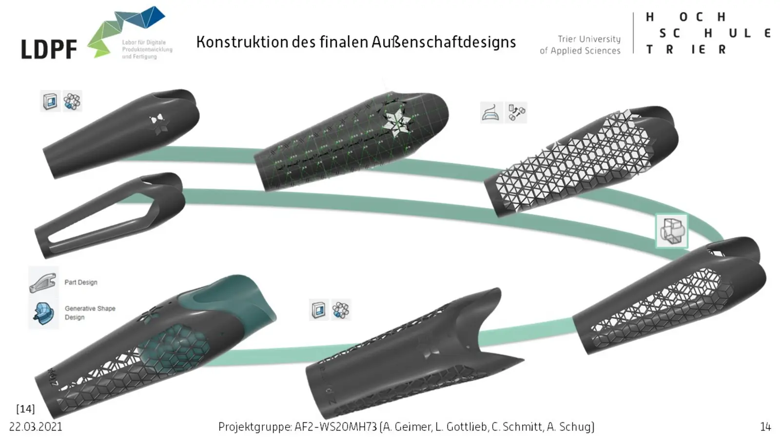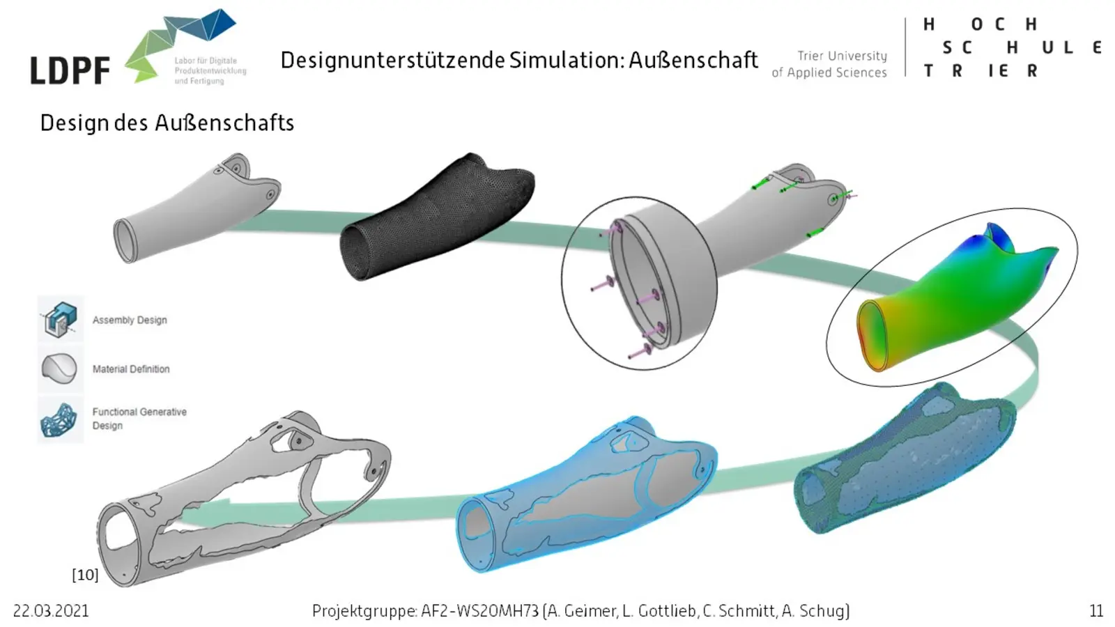 Entwicklung einer individuellen Unterarmprothese in einem vollständig digitalen Prozess vom 3D-Scan über das Generative 3D-Design (Topologie-Optimierung) bis zur Additiven Fertigung: Die Herstellung im SLS-Verfahren (Selektives Lasersintern) stellt damit eine auf den Patienten individuell in Passform und unkonventionellem Design ausgelegte Alternative zu herkömmlichen handwerklich gefertigten Prothesen dar.