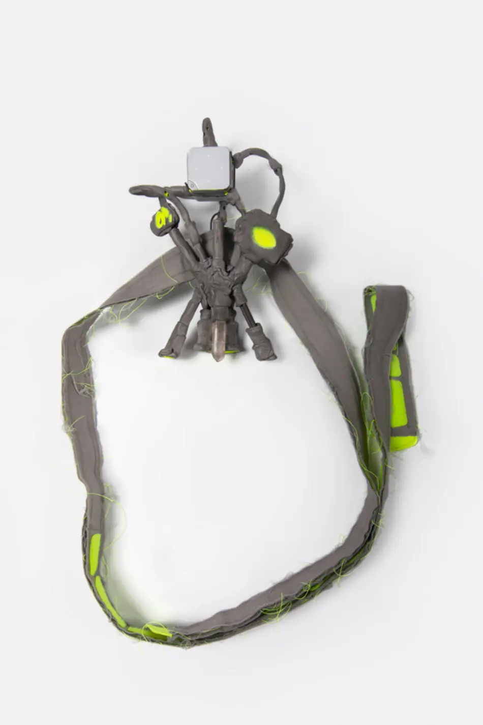 The practical works address the equivalence of the two ways of thinking. They are intended to make characteristics of “magical thinking'' comprehensible as a universally understandable language and to call into consciousness that this principle ubiquitously influences the considerations and actions of every human being. The fiction of the purely rational thinking human being is to be made conscious as such. The pieces function here as a level of reflection for the wearer and the viewer."