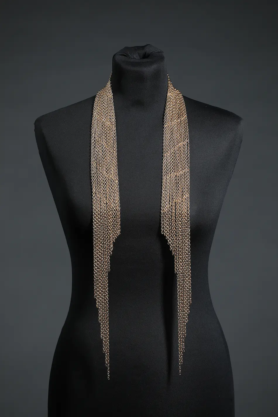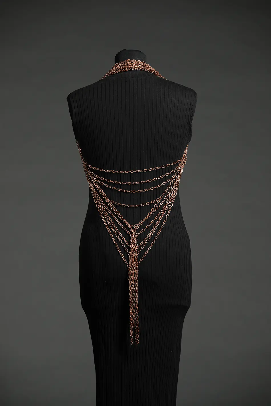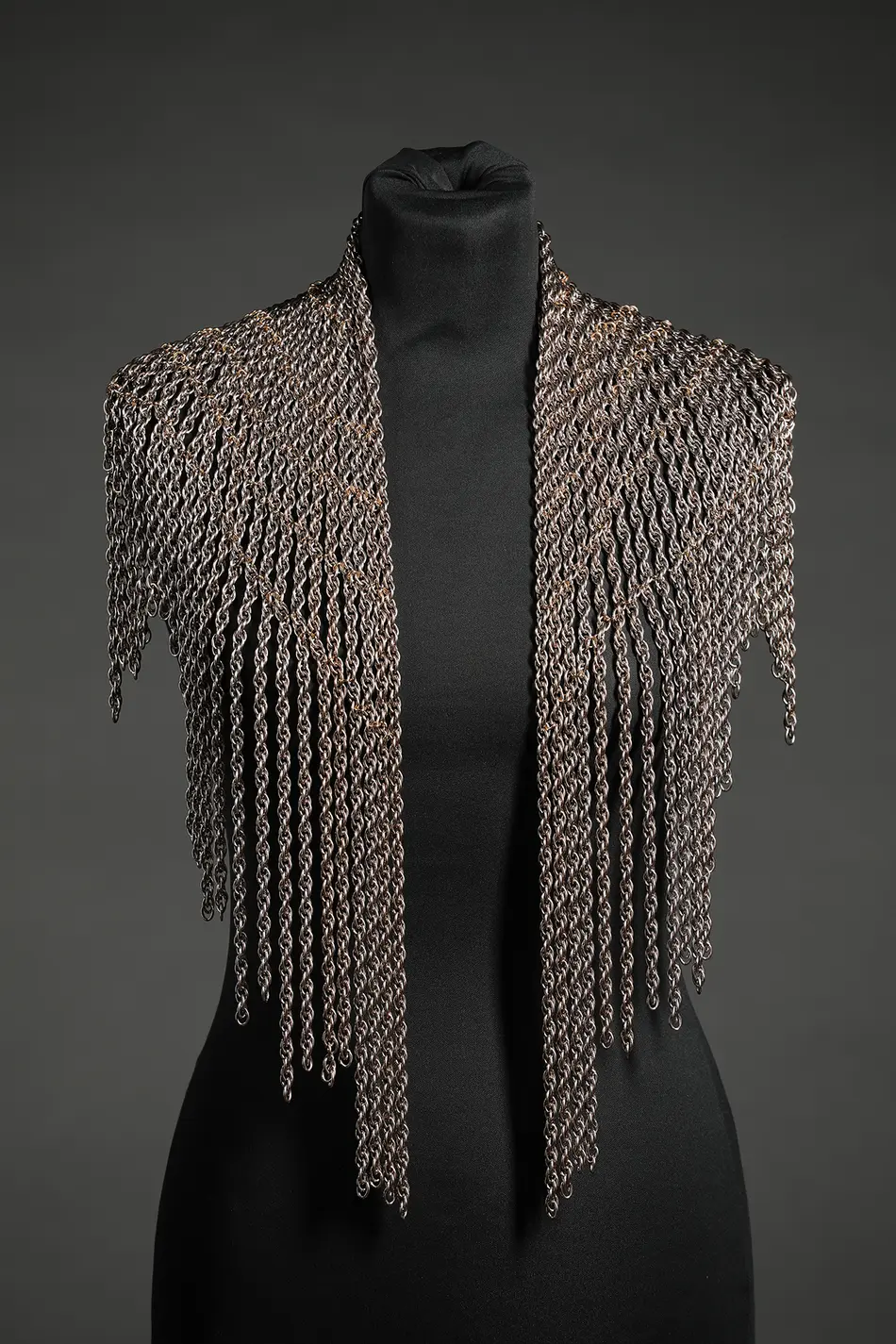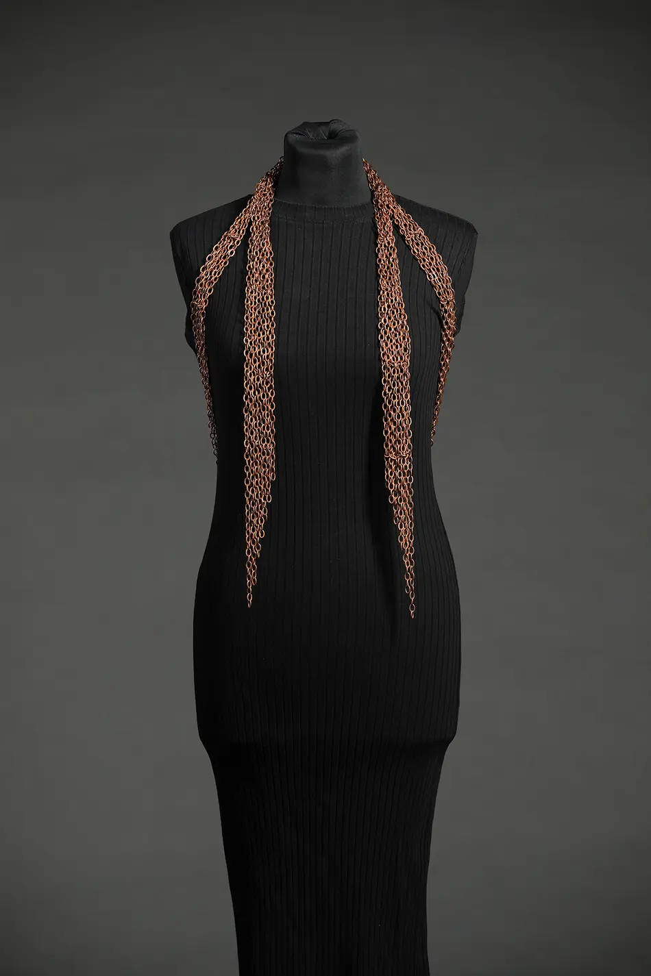 "In meiner Bachelorarbeit setze ich mich mit dem Thema Kette auseinander. Was sind Ketten? Welche Bedeutungen können sie haben und wieso werden sie am Körper getragen? Ketten waren die ersten Schmuckstücke, die Menschen getragen haben. Man kann davon ausgehen, dass die Geschichte der Ketten genauso alt ist, wie die Menschheit selbst. Die Menschen verwendeten alles, was sie beim Jagen und Essen fanden, um eine Halskette herzustellen. In den unterschiedlichen Kulturen verwendete man unterschiedliche Formen, um einen Teil dieser Kultur darzustellen.