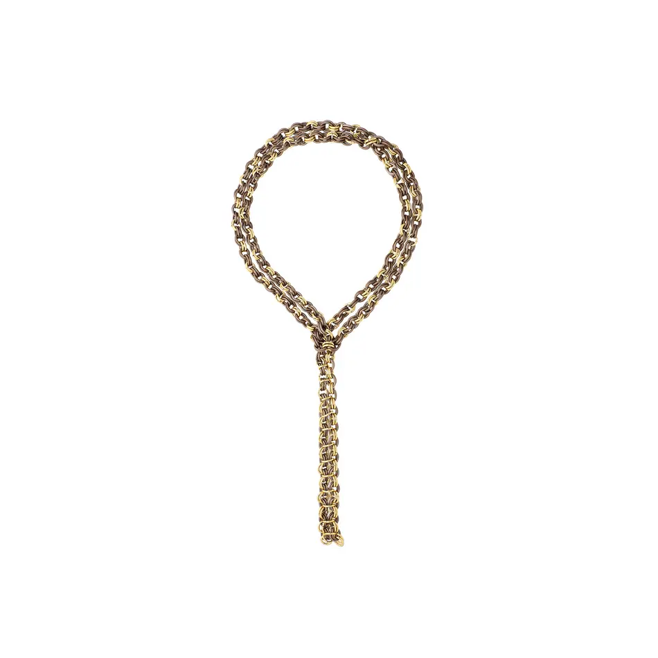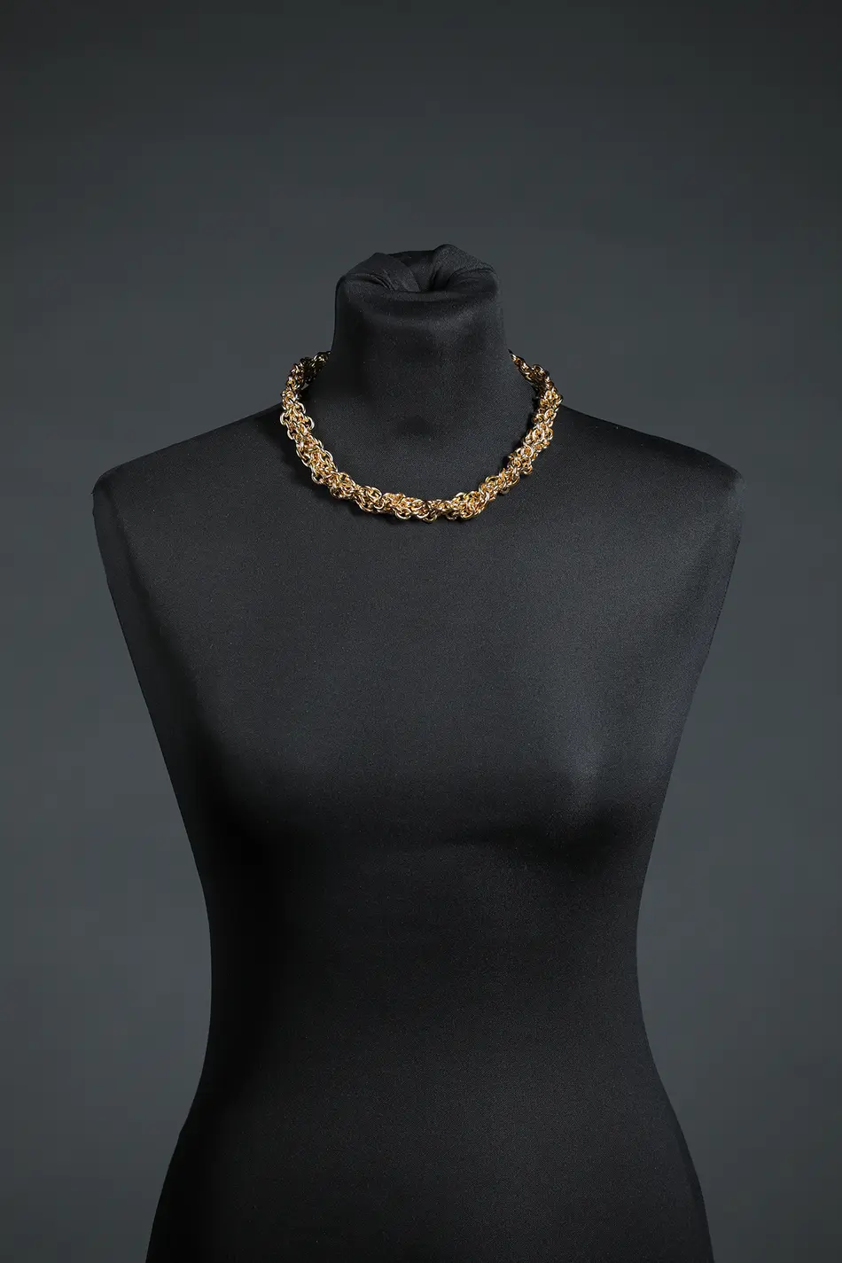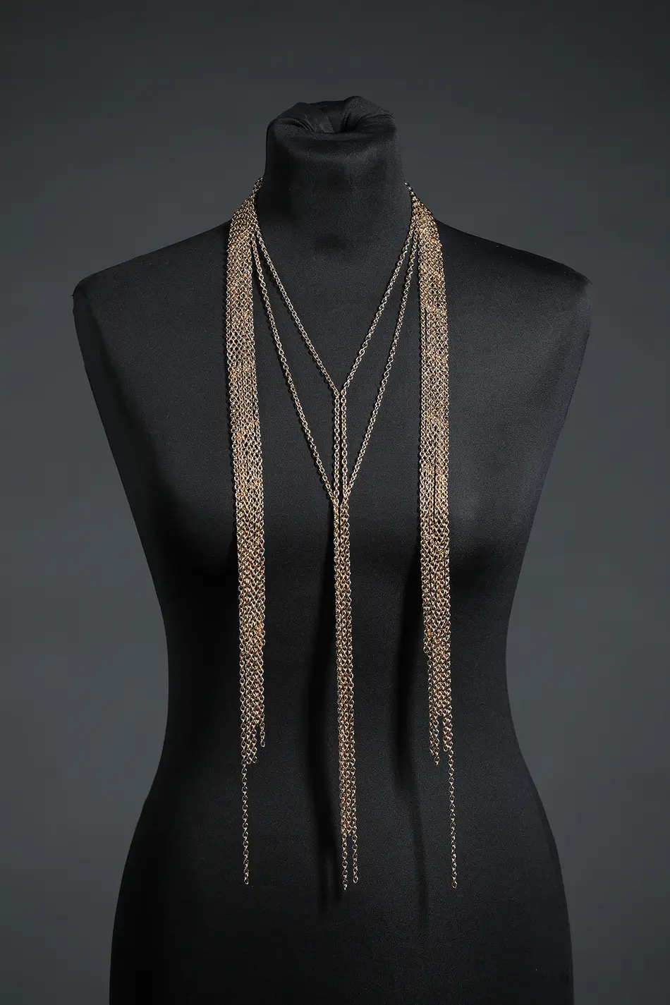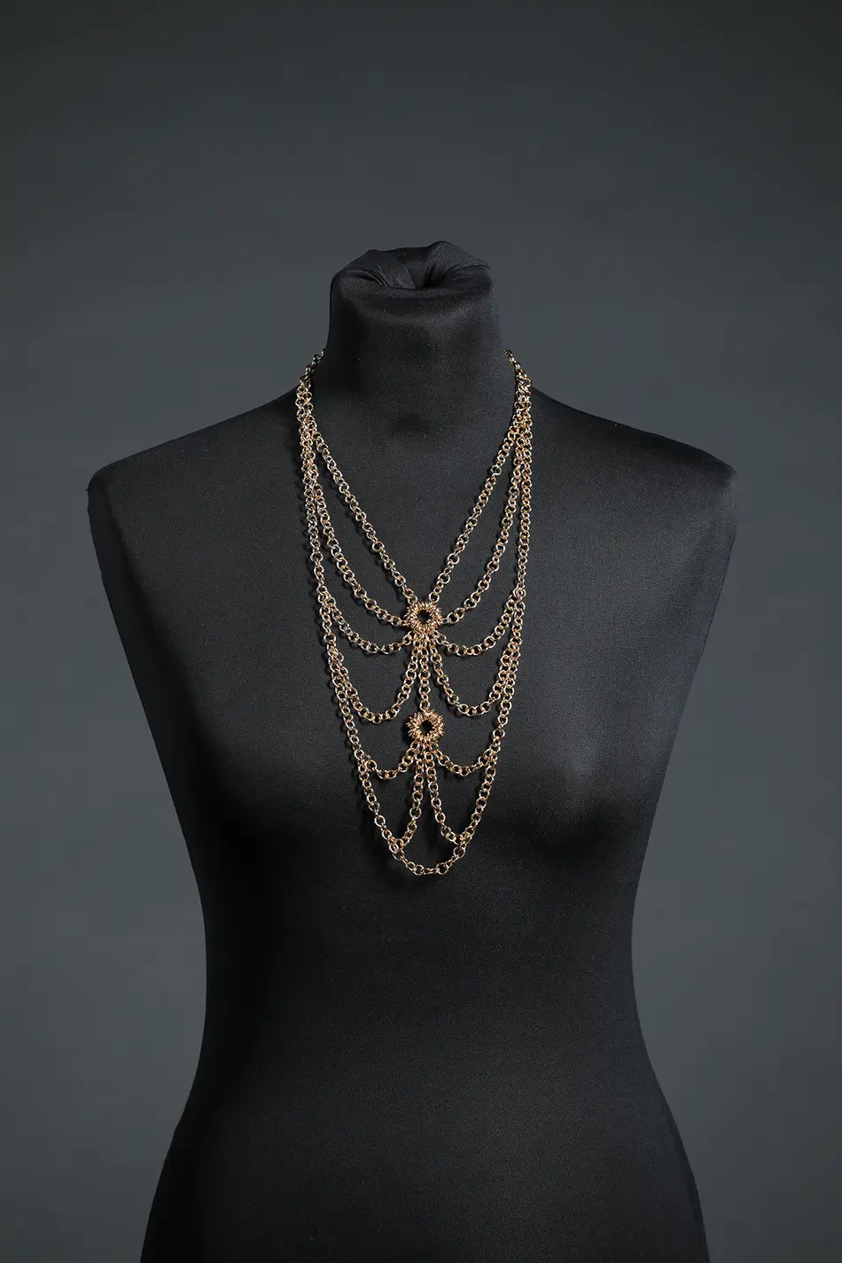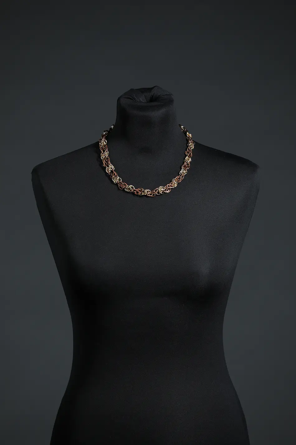 "In meiner Bachelorarbeit setze ich mich mit dem Thema Kette auseinander. Was sind Ketten? Welche Bedeutungen können sie haben und wieso werden sie am Körper getragen? Ketten waren die ersten Schmuckstücke, die Menschen getragen haben. Man kann davon ausgehen, dass die Geschichte der Ketten genauso alt ist, wie die Menschheit selbst. Die Menschen verwendeten alles, was sie beim Jagen und Essen fanden, um eine Halskette herzustellen. In den unterschiedlichen Kulturen verwendete man unterschiedliche Formen, um einen Teil dieser Kultur darzustellen.