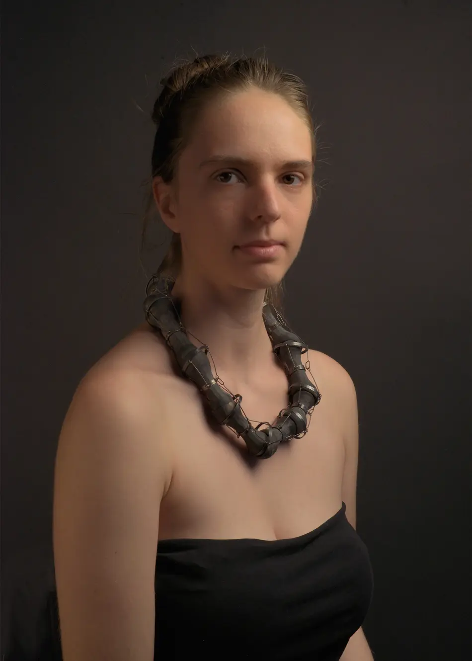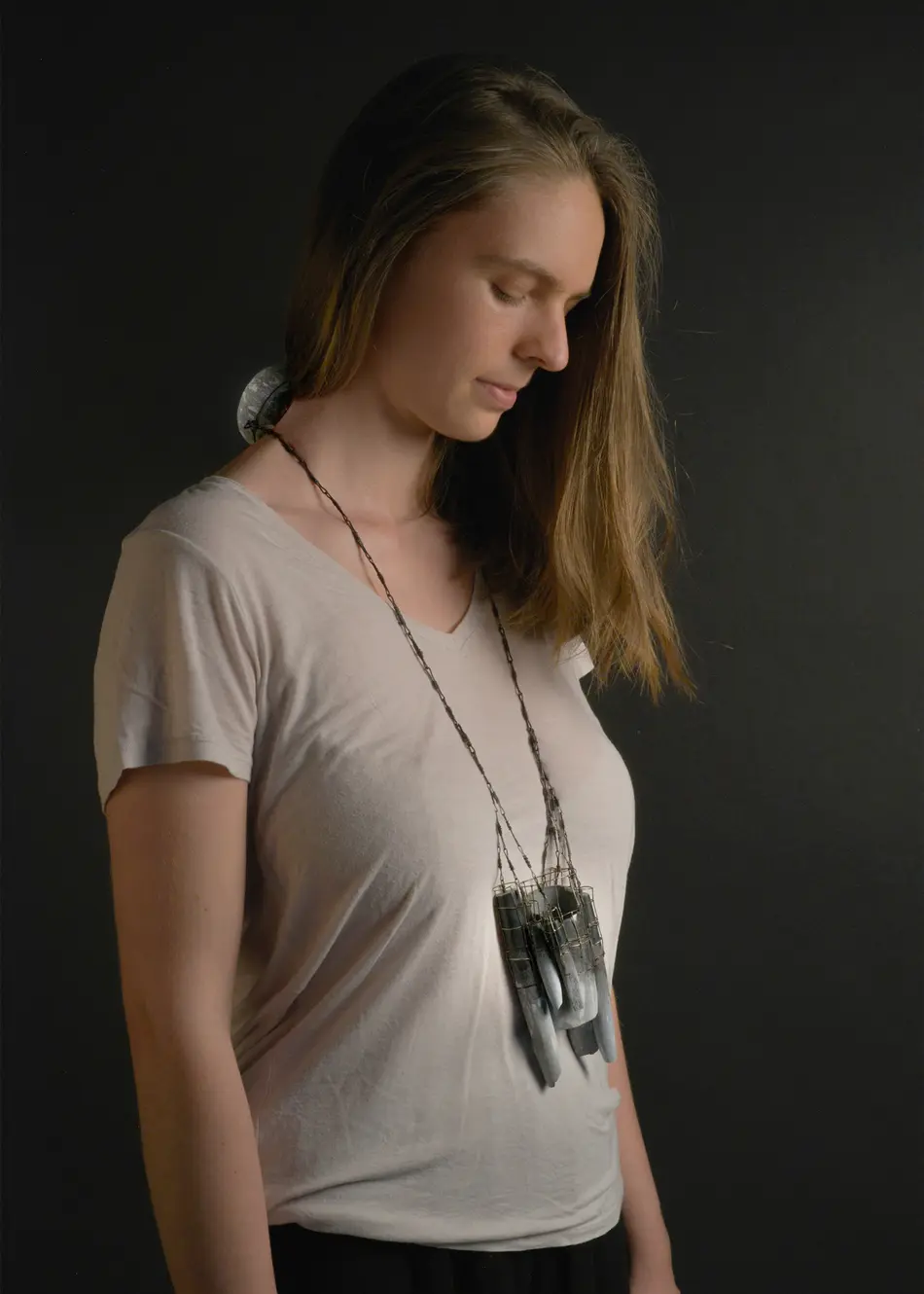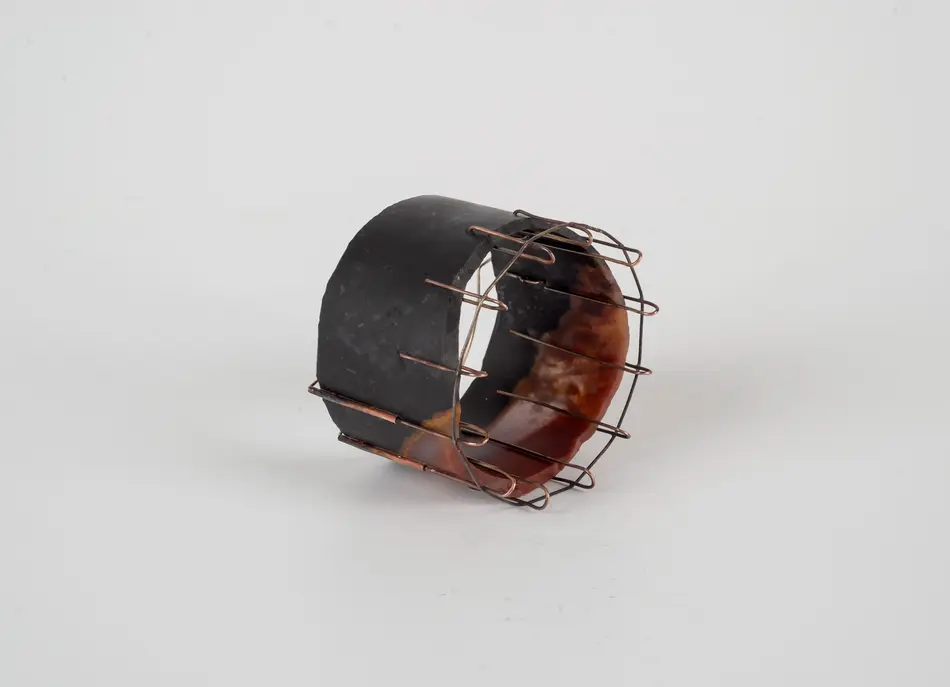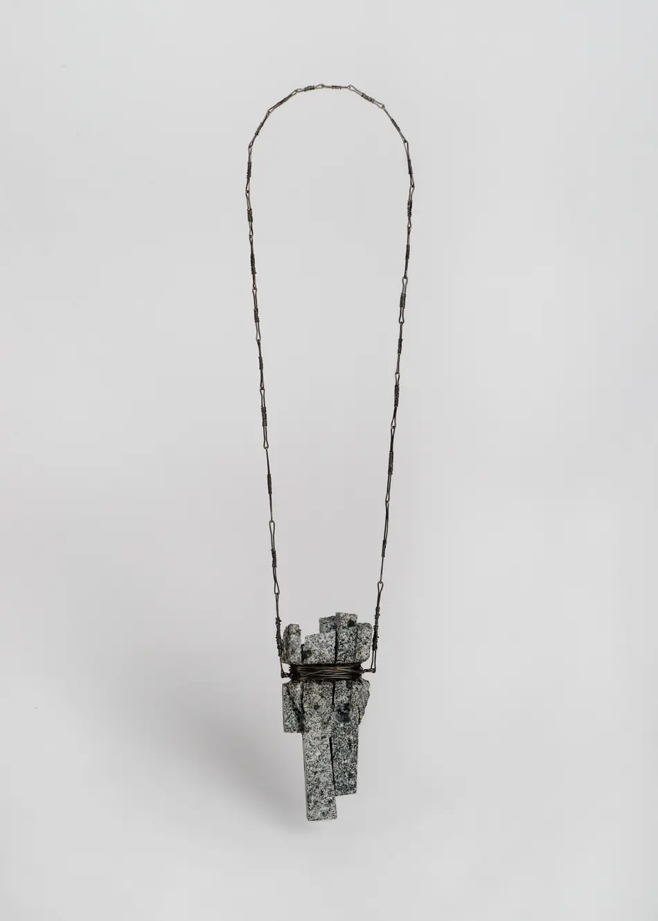 This research concludes with a series of jewellery pieces which attempts an act of human objectification, allowing body parts, or at least in this case, the reminiscence of them, to tell the story of a specific kind of violence that is transgressing human limits. The great advantage of embodying human memories is the transparency or rawness that is inherent in their symbols. Repeatedly breaking, abrading, and reconstructing enduring stone. Like this, the passage of time is recorded. The fragility of metal is put to the maximum test, vulnerabilities that, all together, sustain with ample strength. This research is a claim for recognition. Reflecting on the portrait of war that political art offers, which can reveal the mirror of memory to discover a national identity."