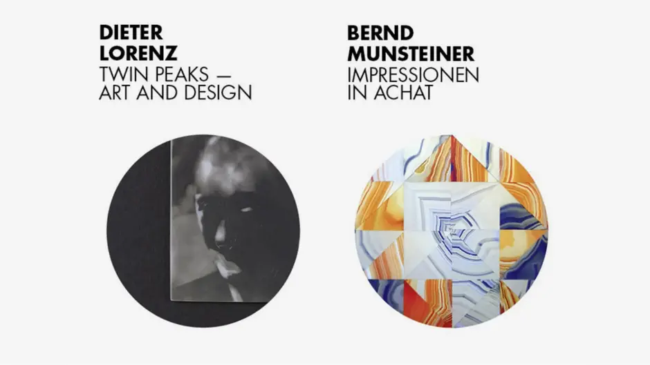 In this tradition, Dieter Lorenz and Bernd Munsteiner have created a large number of abstract works in recent years, which are being presented to the public together for the first time. Both pursue completely different artistic goals: While Munsteiner, as already in his sculptural work, now also discovers the natural ornament of crystal as a material of art in the two-dimensional picture, Lorenz's colourful abstractions between design and conceptual art reflect the zeitgeist of the late 20th century.