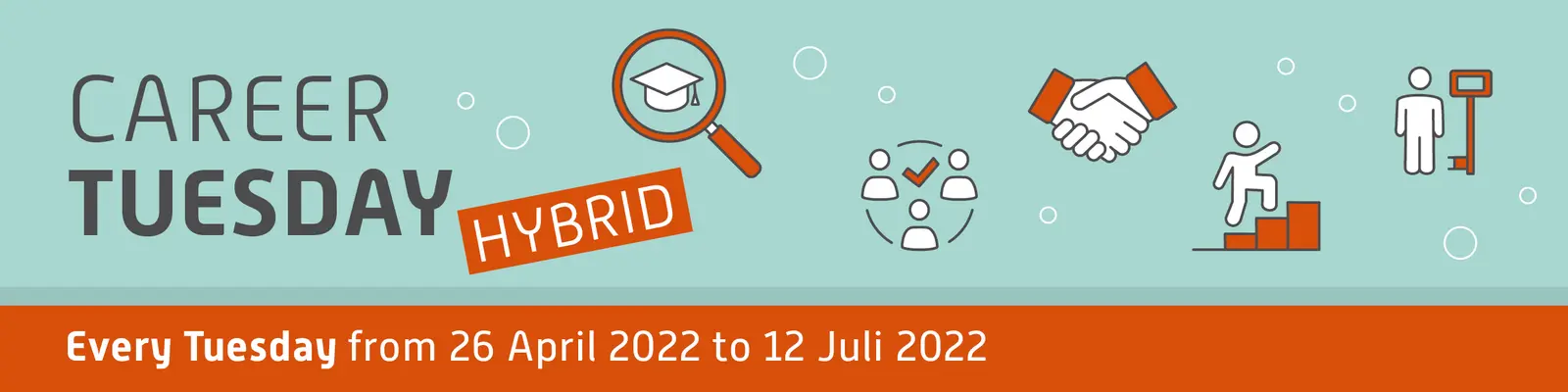 Every Tuesday from 26 April 2022, we will once again offer you the opportunity to meet companies that are now looking for you. Get infos about entry-level opportunities, the application process and get in touch with company representatives online and/or in person - in the comfort of your own home or directly on the university campus.