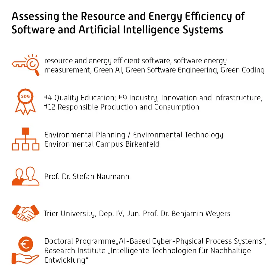 The developed models, methods and criteria are first evaluated and validated by the scientific community, disseminated in conferences and workshops. We then gradually transfer the results to society by developing and presenting best practice examples at developer conferences, cooperating with industry or developing labels, such as the "Blue Angel". We hope that in the long term this will lead to a turn in society and, by economies of scale, ultimately to strong resource savings by applying the methods in developing software and especially AI-based systems.