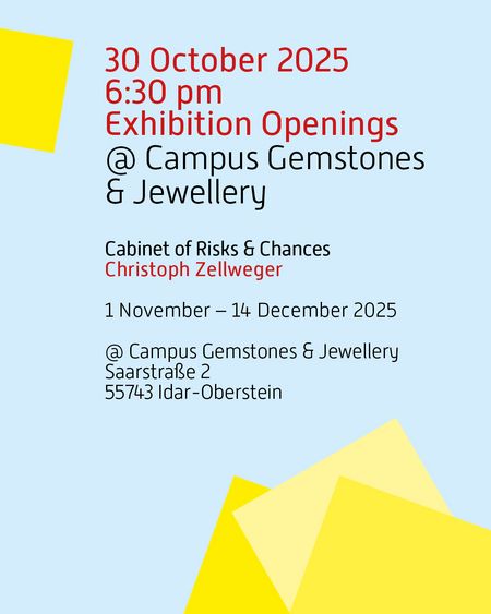 30.10.2025 um 18:30 Uhr: Exhibition Opening at Campus Gemstone and Jewellery: Christoph Zellweger: „Cabinet of Risks & Changes“