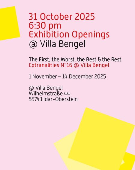 31.10.2025 um 18:30 Uhr: Exhibition Opening at Villa Bengel: Extranalities N°16: „The First, the Worst, the Best & the Rest“