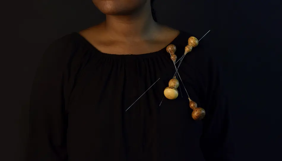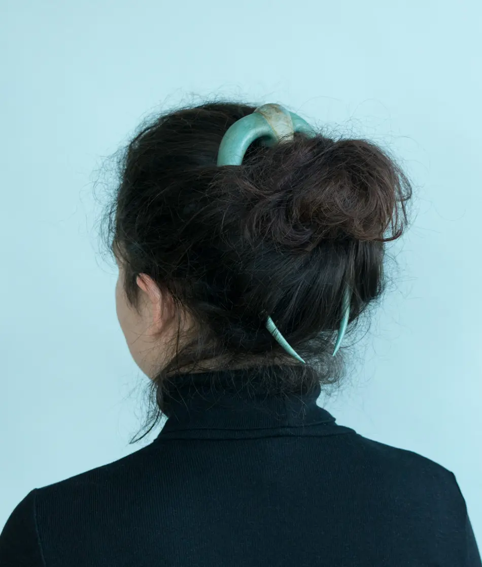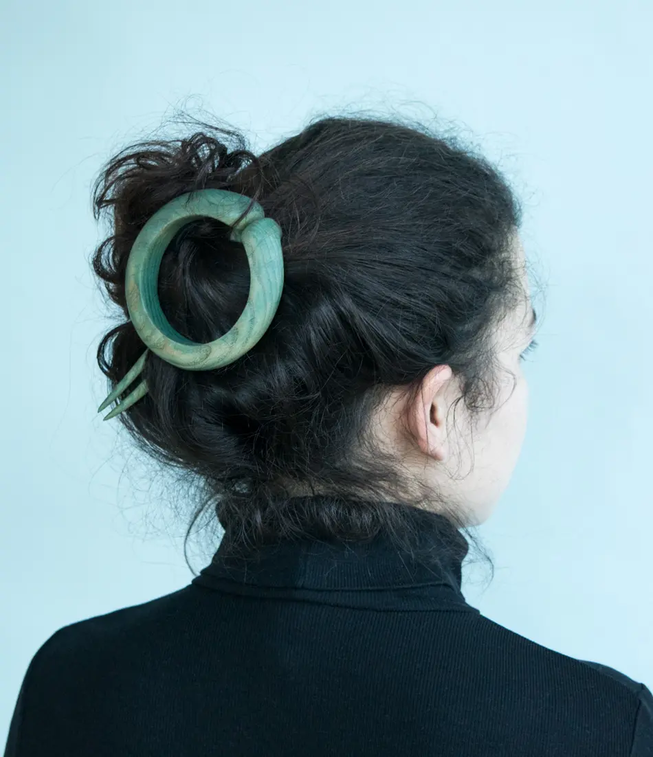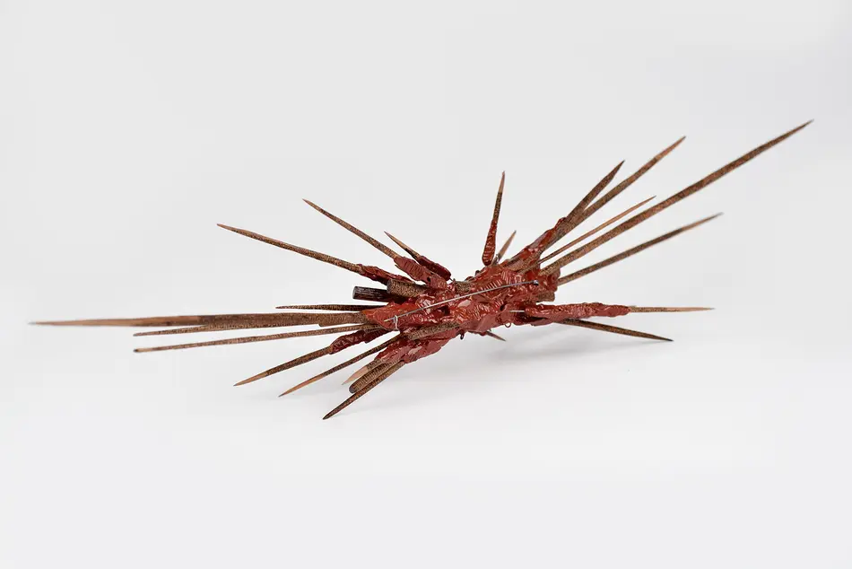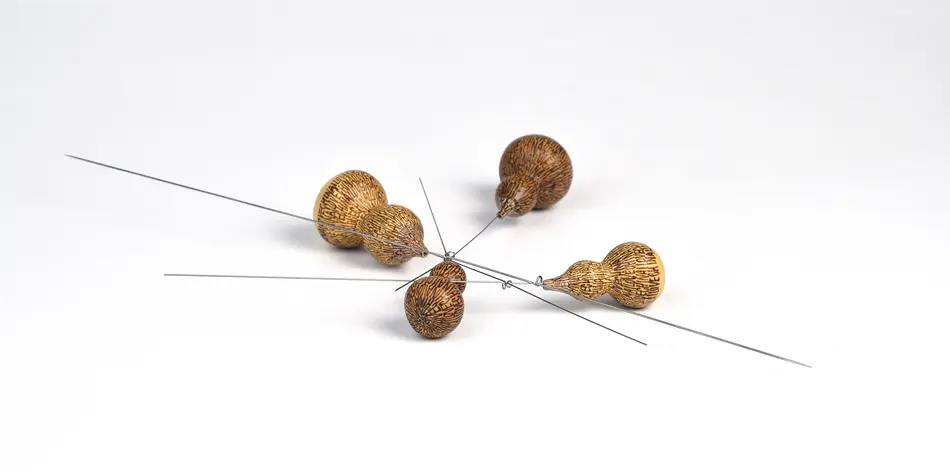 Looking at society, I consider the role of the jewellery artist the one of an angler, the one who looks for special ways, motifs and actions to tempt, lure and who finally catches “the big fish” (customer). The jewellery, “the bait”, is created with the hope for a successful catches and in order “to snag the prey”. To provoke a smart fish to bite the sharp hook, the bait itself has to have the appropriate seductive power. Therefore, and in order to provoke a strong attraction to the observer of my works, I have aimed to emphasize on the notion of curiosity. Each of my pieces represents a small situation, which may recall stories to the viewers, still leaving them space to discover their own. I create my works from different materials and shapes, even with smooth surfaces, so that people want to touch and feel them. Their shapes speak for themselves, which makes the observers become meditative and let their own emotions and fantasies to unfold. Last but not least, each work invites to a metaphorical reflection.