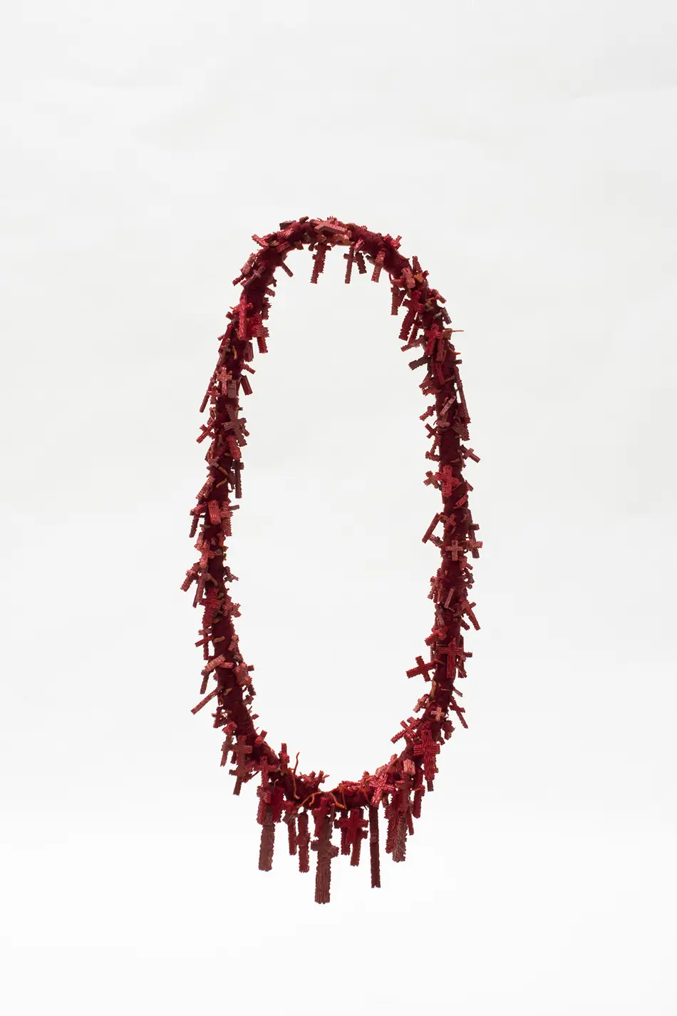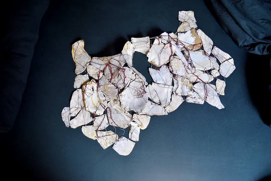 The practical part of my thesis is based on my perception of death in the current situation in Mexico. Where human remains, bones and the feeling of an open wound that does not heal become the inspiration for my work, leaving aside the popular symbols of death in Mexico (Catrinas and sugar skulls) and the joyful spirit of the day of the death. Through these elements my work becomes a reflection of the crude reality that is lived in the country. “Hermanas” for example is a remembrance of all of the women that have been killed in Mexico just because they were a woman. Omtl is a stylized reflection of the human bone traces that have been found in the clandestine graves in the country.