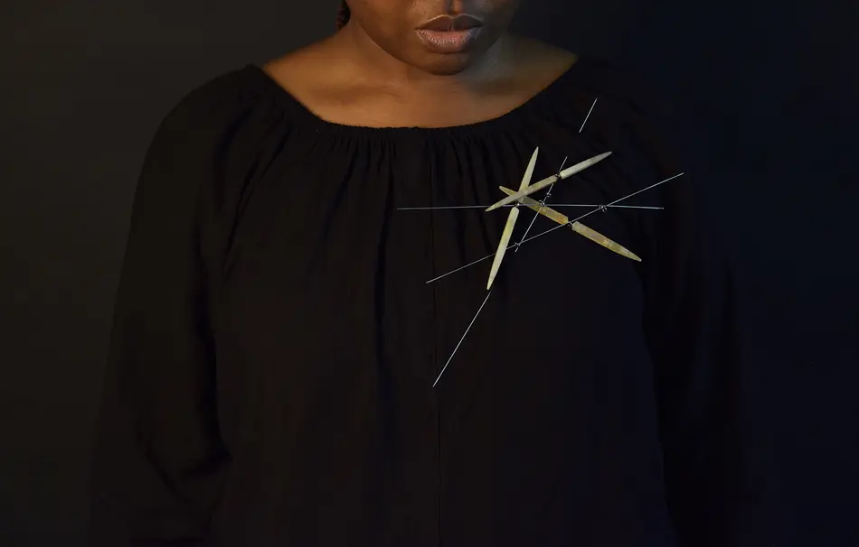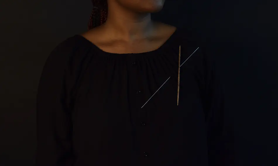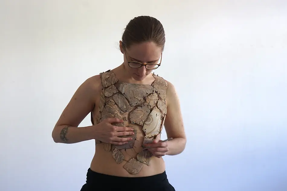 The point of symbols is to ease the way of connecting with the underlying message. This is a symbol of my skin, which makes it my skin. The skin that I have painstakingly grown over the years of my life, as a person, as a woman, as an artist. The scars and uneven bits and mistakes that you see here are mine. The sutures are mine. It has grown into me just as I have grown it on myself: my blood is its blood. It’s heavy and stifling and presses a bit too hard when I inhale, like a tight but suffocating embrace, a promise of safety in exchange for numbness.
