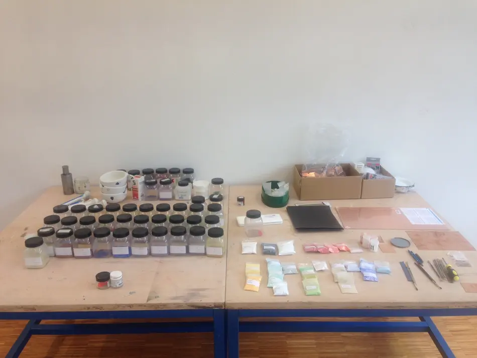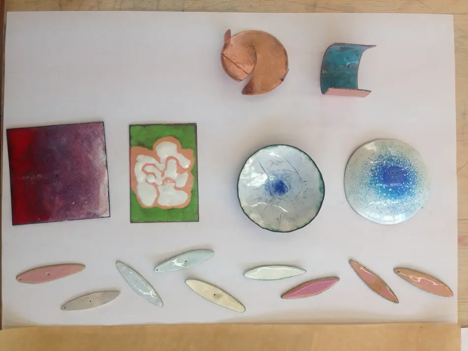 This enamel workshop is aimed for anyone interested in working with enamel, as a way of adding colour and texture to copper. It can be used painted, dripped, sgraffito, layered and ground back, textured and more. You will have the opportunity to experiment with all these techniques, using opaque and transparent enamels and using the kiln to design and create jewelry pieces. Enameling involves fusing powdered glass onto your surface, like copper, silver, gold and firing it to create hard decorative surfaces.
