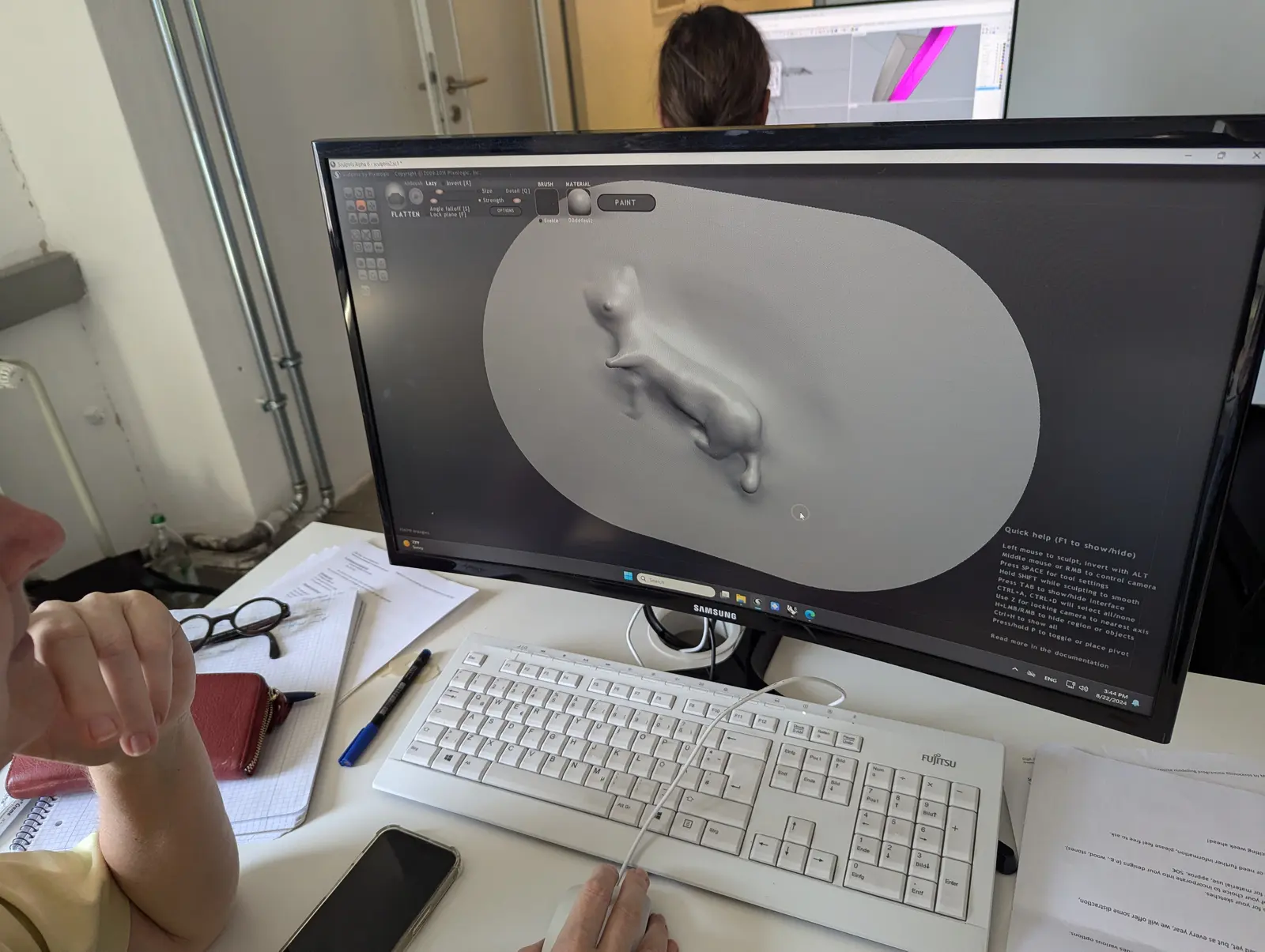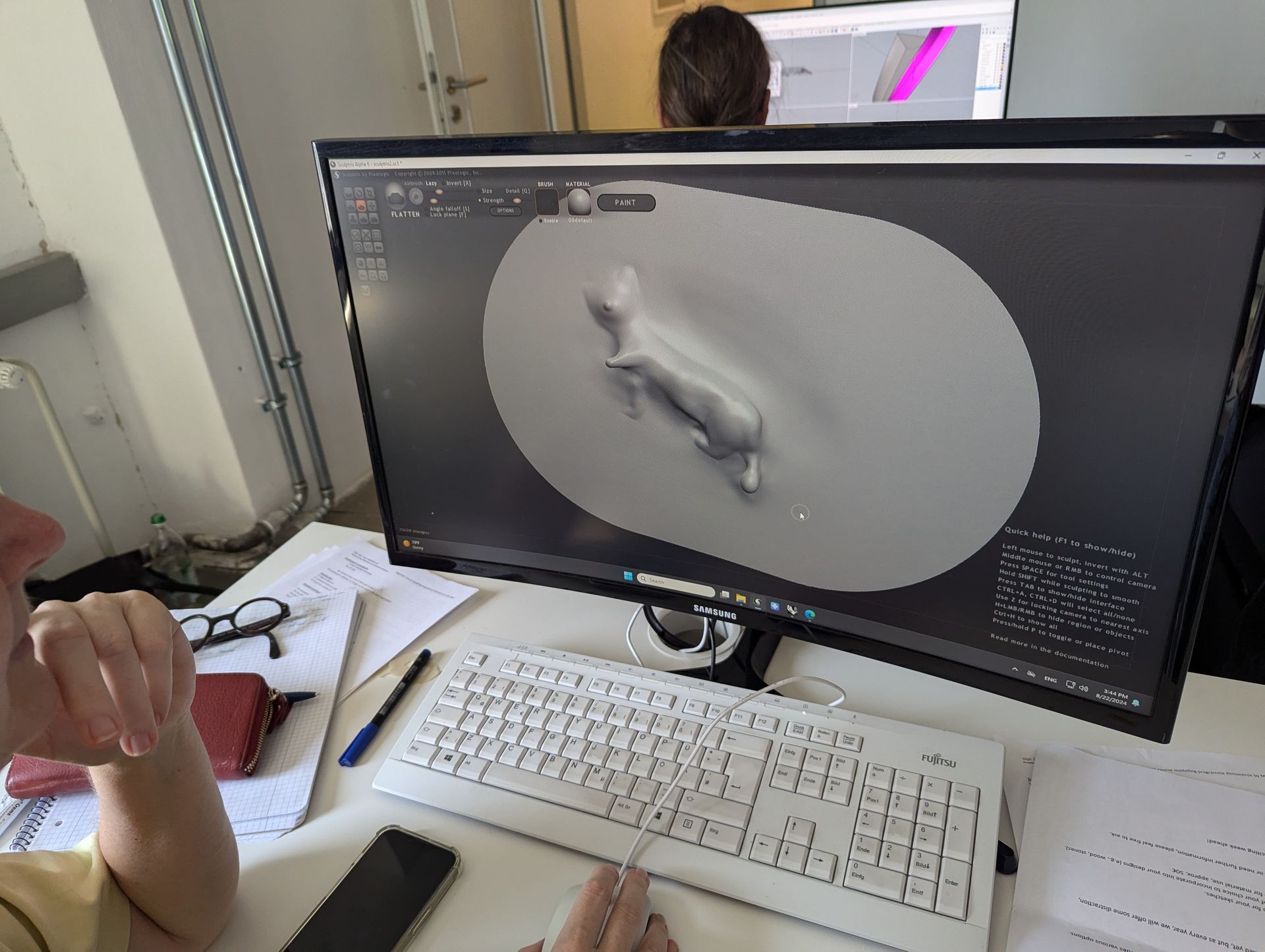 You will work with the software programmes RHINOCEROS and SCULPTRIS. I will introduce the freedoms that computer-aided modelling can produce when combined with the artistic possibilities. RHINOCEROS, a construction programme for high dimensional accuracy, offers a number of tools for design and free forms. Due to its sculptural approach, SCULPTRIS is a useful supplement to the conceptual work in RHINOCEROS. The workshop will discuss the differences and strengths of both programmes. I will showcase the interaction of different tools and the application of commands on participants’ own projects. We will have access to 3D printers, e.g. the Eleegoo Saturn3. The designed objects can be printed immediately in plastic or castable resin.