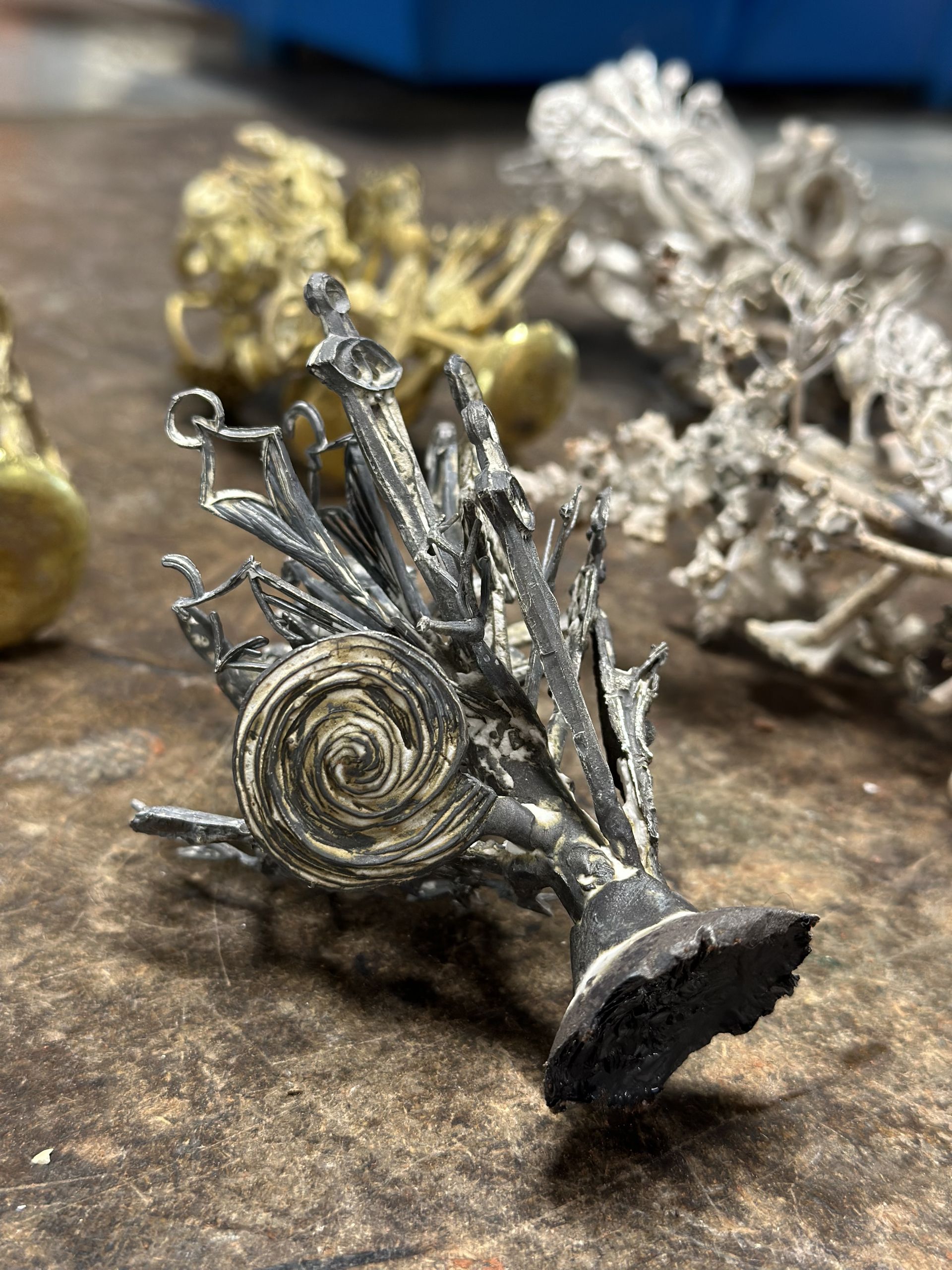 The workshop will give you an introduction to experiment with metal casting in a variety of ways. We will explore different ways of molding and casting by carving directly into molds of stone, rubber and plaster to give different results. We will use these same molds and models for further development through sand casting and lost wax casting.