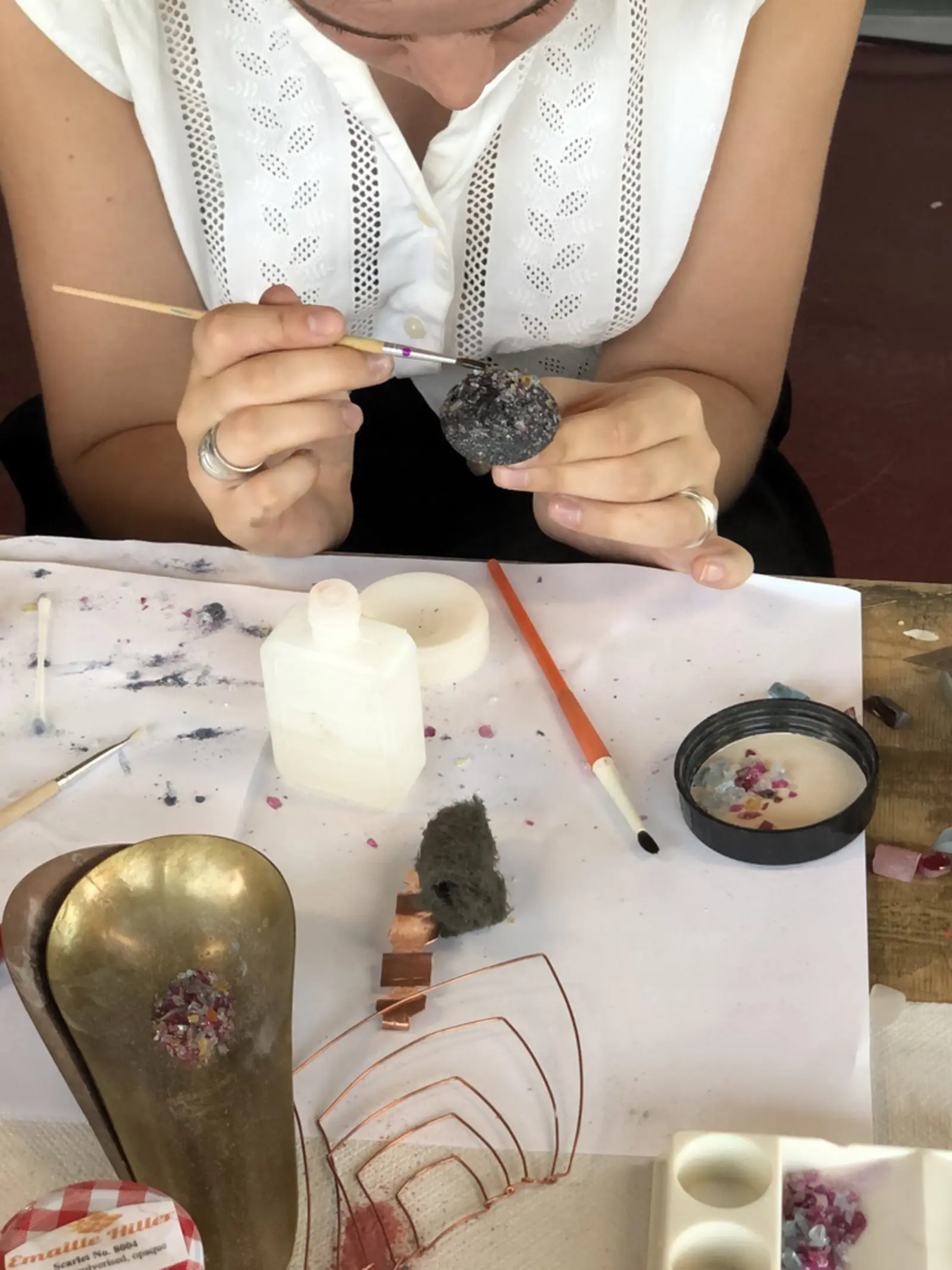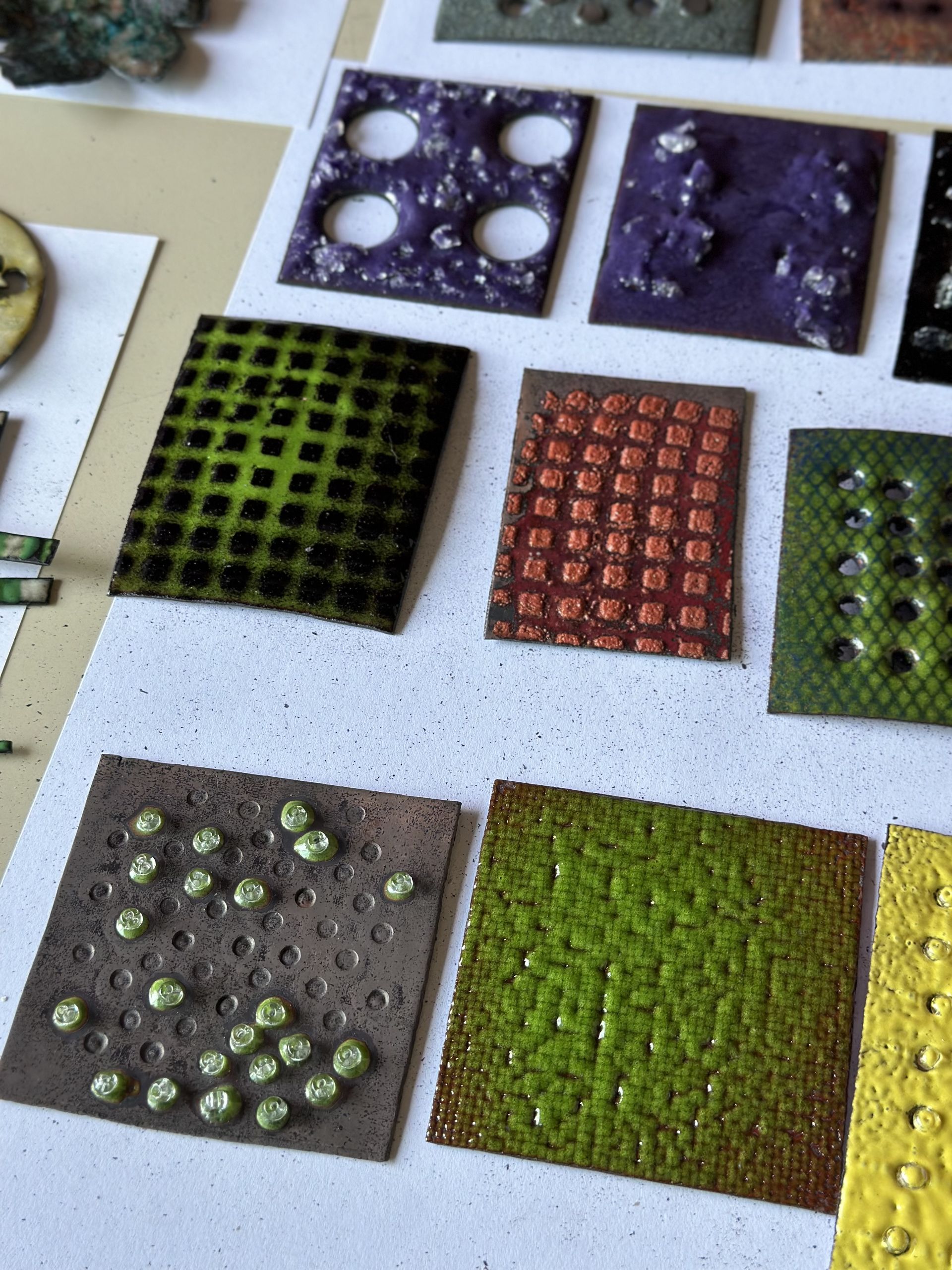This enamel workshop is aimed for anyone interested in working with enamel, as a way of adding colour and texture to copper. It can be used painted, dripped, sgraffito, layered and ground back, textured and more. You will have the opportunity to experiment with all these techniques, using opaque and transparent enamels and using the kiln to design and create jewelry pieces. Enameling involves fusing powdered glass onto your surface, like copper, silver, gold and firing it to create hard decorative surfaces.