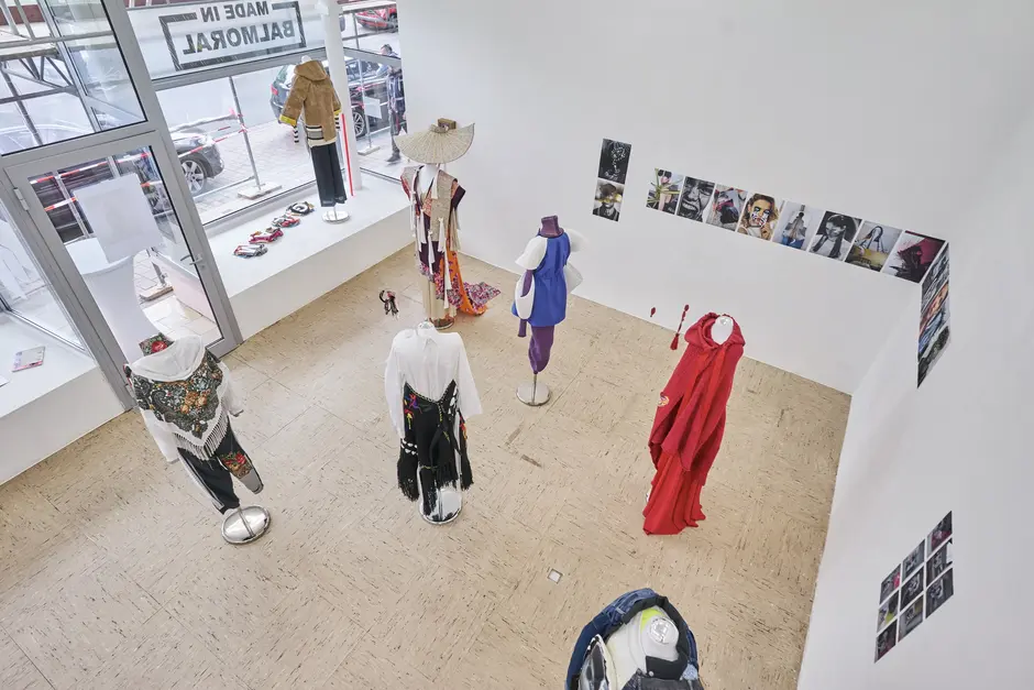 The students of the 6th semester of the fashion design department showed their works and discussions from the three teaching areas of cultural studies, artistic expression and design conception and draft in the context of the exhibition. In the exhibition, the diverse works created by the students deal specifically with the connection between vestimental stereotypes of the self and the foreign, as well as the question of the definition of glamour and luxury in the field of globalized fashion.