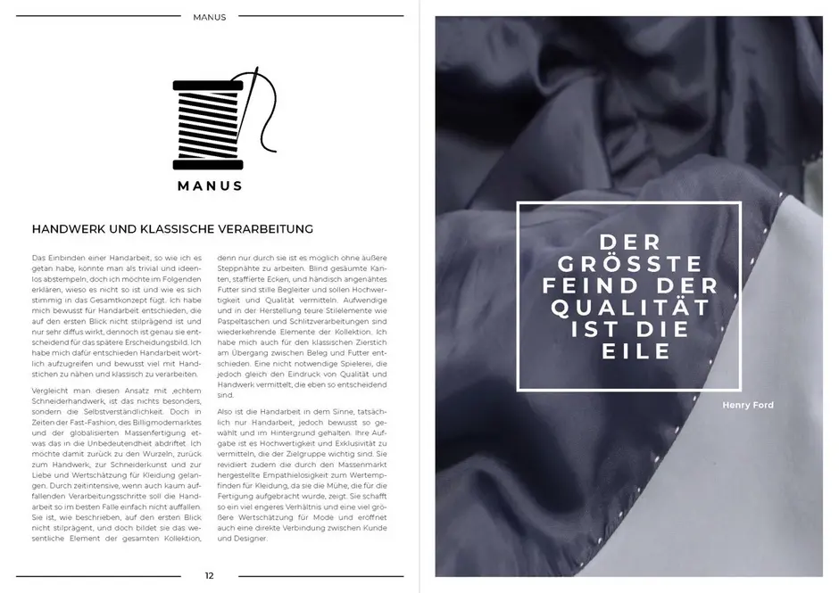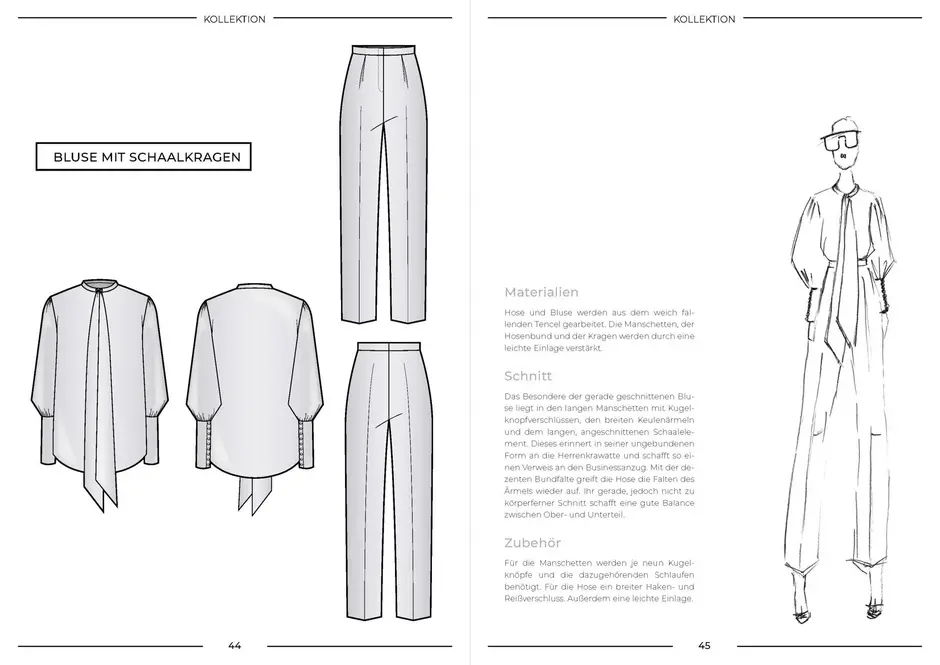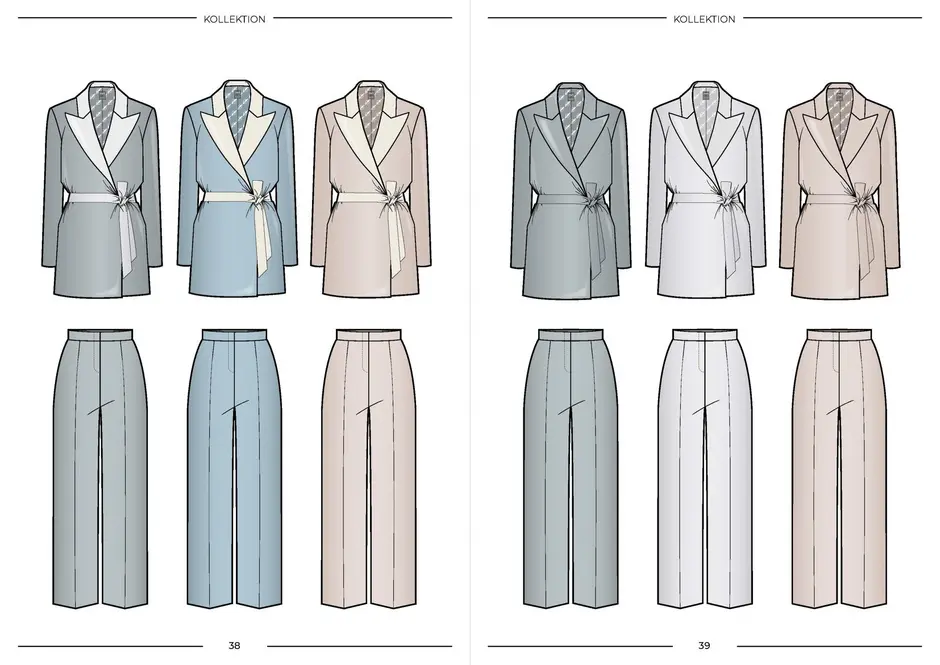 My collection is inspired by classic men's cuts, especially the traditional business suit and uses their common vocabulary of forms, but these elements are interpreted and implemented in a feminine and modern way. The lapel plays a leading role as the attribute of the men's suit and is taken up as a striking rising lapel in the collection. The trousers are also an important element of the collection. Like no other item of clothing, they have a historically masculine connotation. The cut of the pants is reminiscent of that of Marlene Dietrich, who made trousers accessible to the broad mass of women and shaped an entire era. They are meant to remind of her as a strong, successful woman and style icon and carry the touch of her pathos. Details such as cuffs are adopted and transformed into a finer and more refined version through nuances. Thus, they are lengthened and closed with ball buttons and loops instead of the classic buttonhole. The straight cuts, which are not close to the body, only get their character from the tied waist belt, which creates proportions and decisively determines the silhouette.