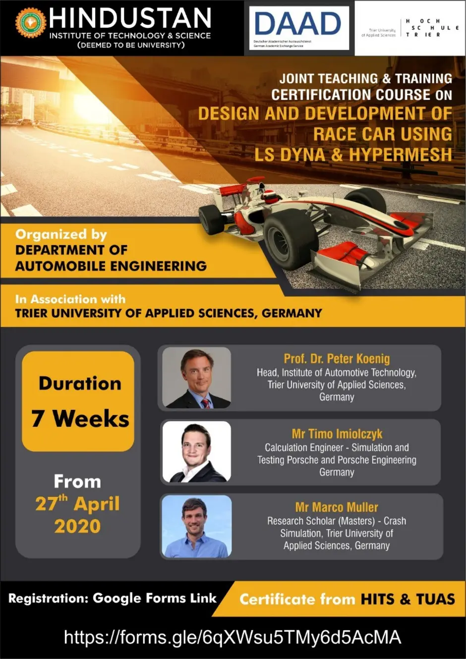 Our Indian partner university Hindustan is extremely active and successful in Formula Student. We want to support this team implementing state-of-the-art CAE tools. In an international workshop a new racing kart is to be developed digitally, then displayed in simulation and finally examined in a frontal crash.