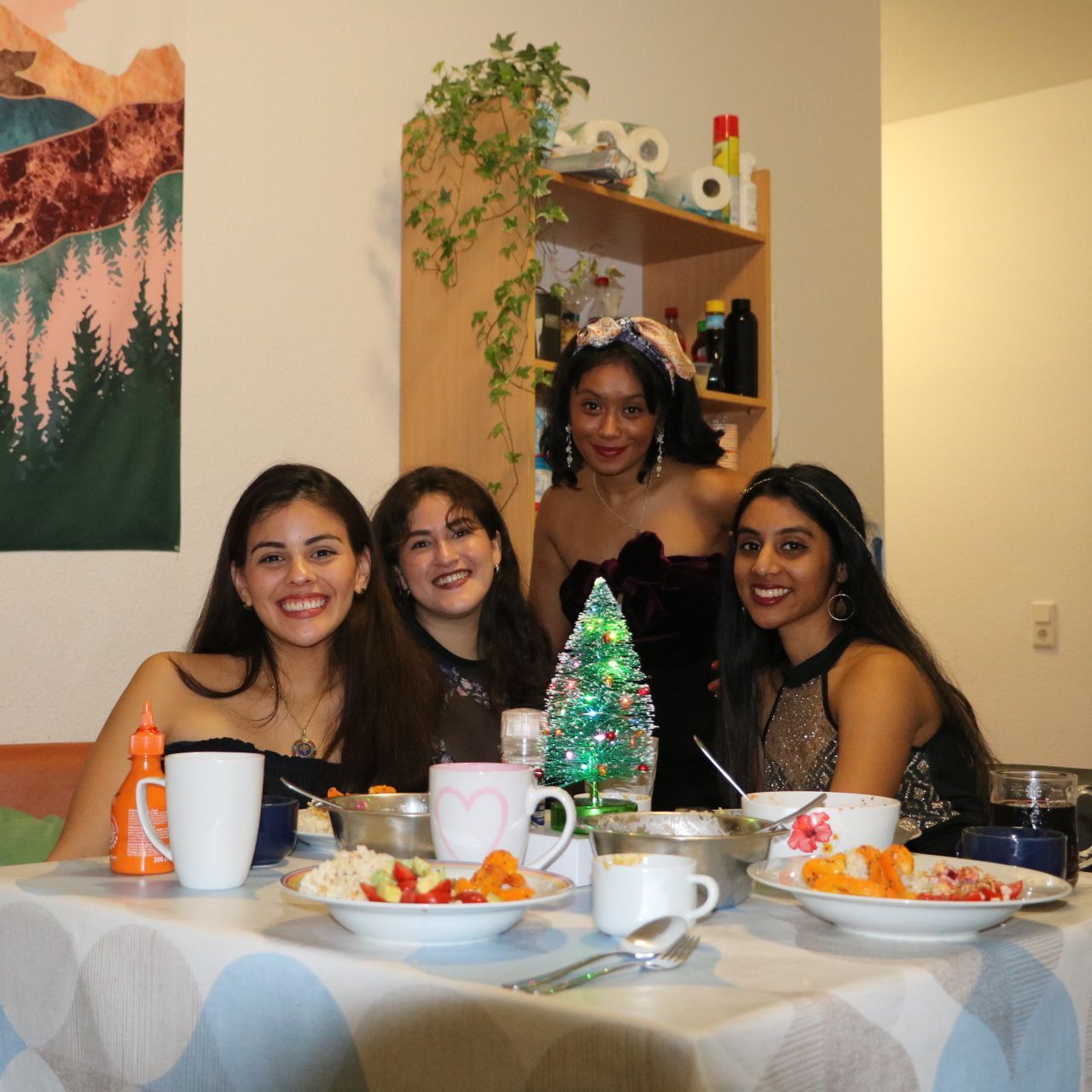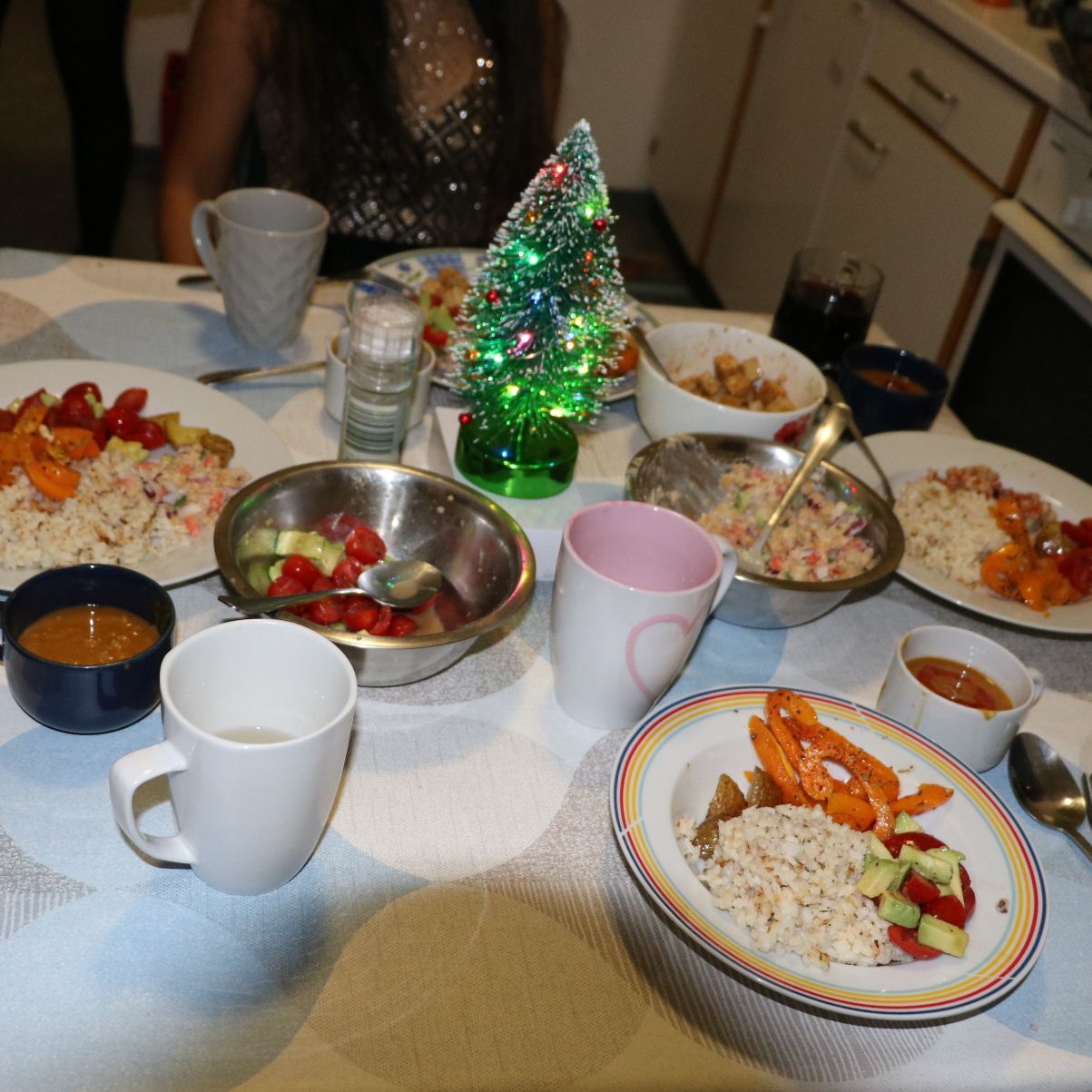 Merry Christmas!! Christmas is always about family and friends. Since most of us international students couldn't travel around to celebrate Christmas, along with four of my close friends, I decided to have a decent Christmas dinner. We made sure we had a small tree to replicate the christmas vibes in the apartment and cooked a three course dinner. For starters, I made a warm lentil soup with lots of Nepali spices. For the main course, we decided not to go very fancy. We individually cooked each element for a semi warm Buddha bowl. Desert was quite student-like, vegan ice cream with fruits. All in all we had a good time singing and dancing for hours and had a nice sleep over.