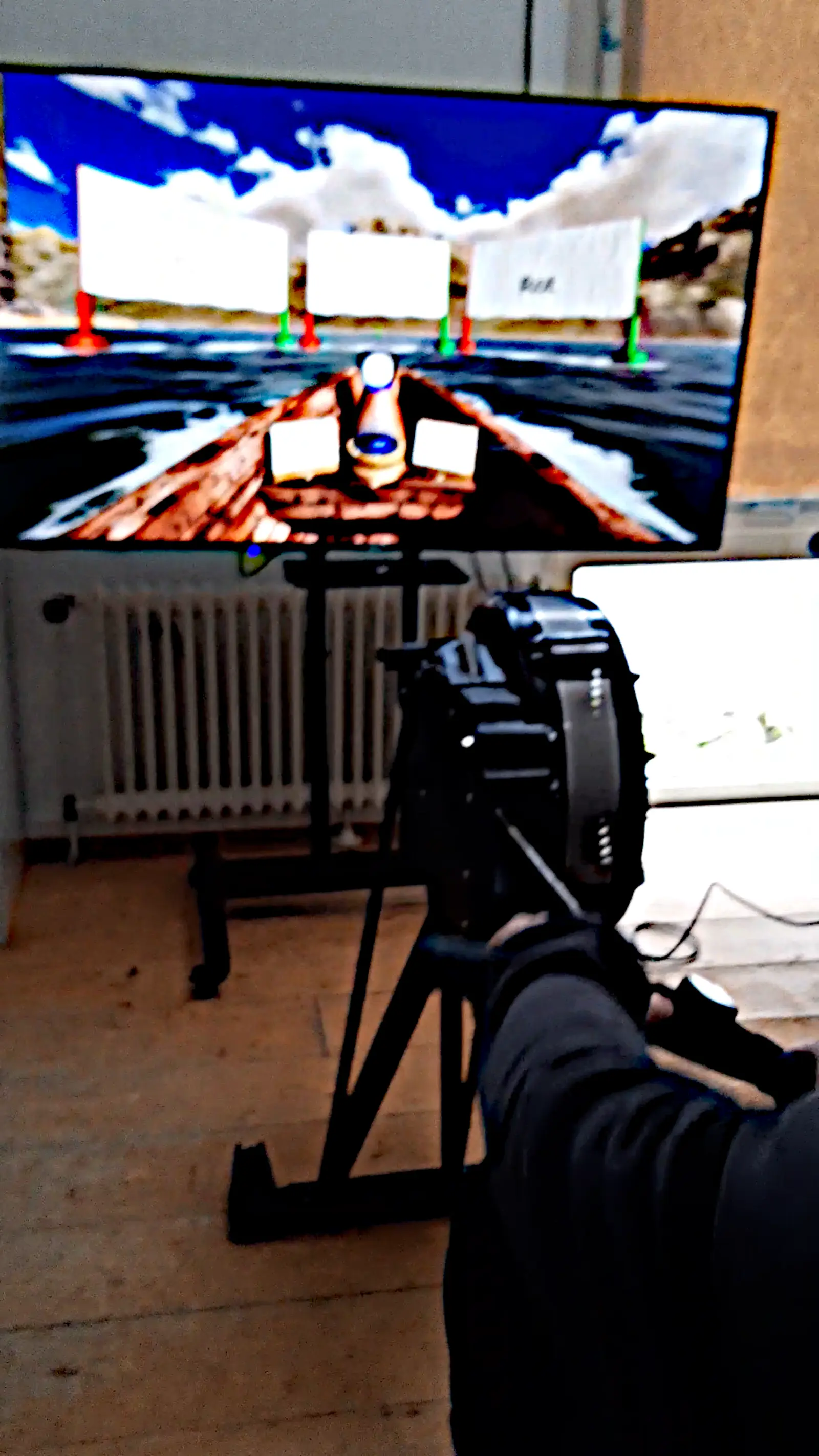 Question gate with up-rolled banner ahead.