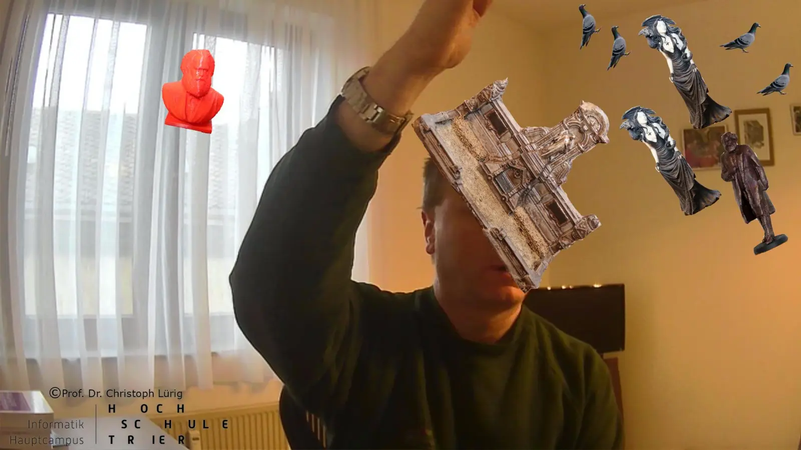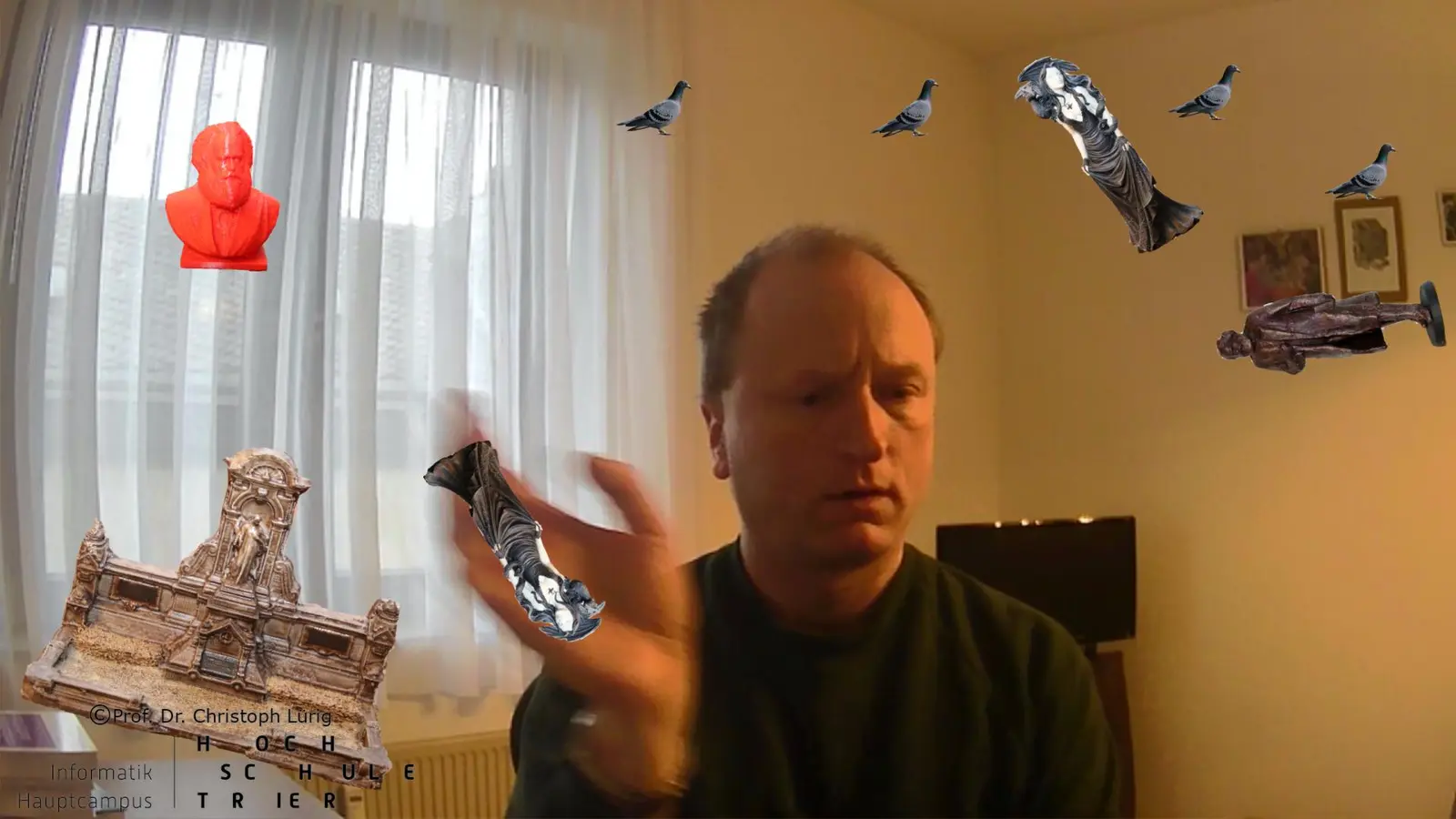In this picture, the user already moved the images around. He starts throwing the statue away.