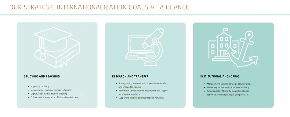 In developing the Internationalization Strategy 2022-2026, the university has been guided by the relevant regional, national and European higher education policy framework. The strategic internationalization goals are implemented in three overarching fields of action: