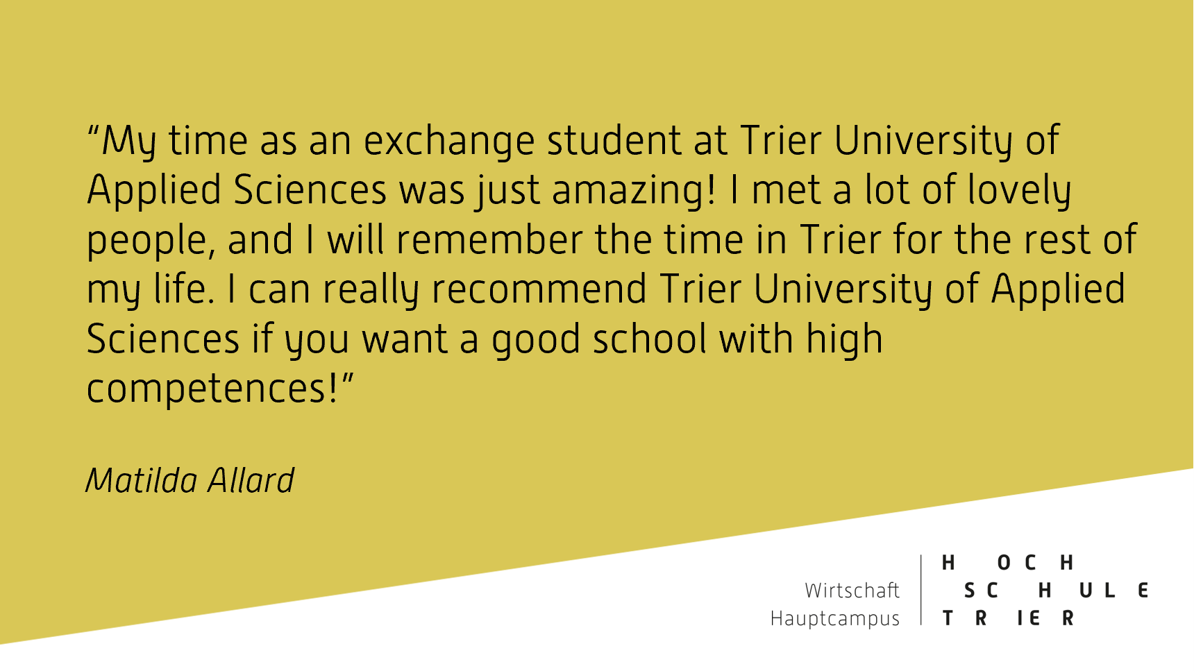 Every semester we welcome exchange students from all over the world. Within the framework of international student exchange, we maintain various partnerships with universities worldwide. Usually students stay in Trier for one or two semesters and take part in business and language classes in our department. They have the opportunity to participate in courses that are theory-based and have a high practical relevance to the business world. Our dedicated professors have a lot of practical experience in the business world and therefore teach both knowledge and contents which students can integrate into their professional lives in the future.