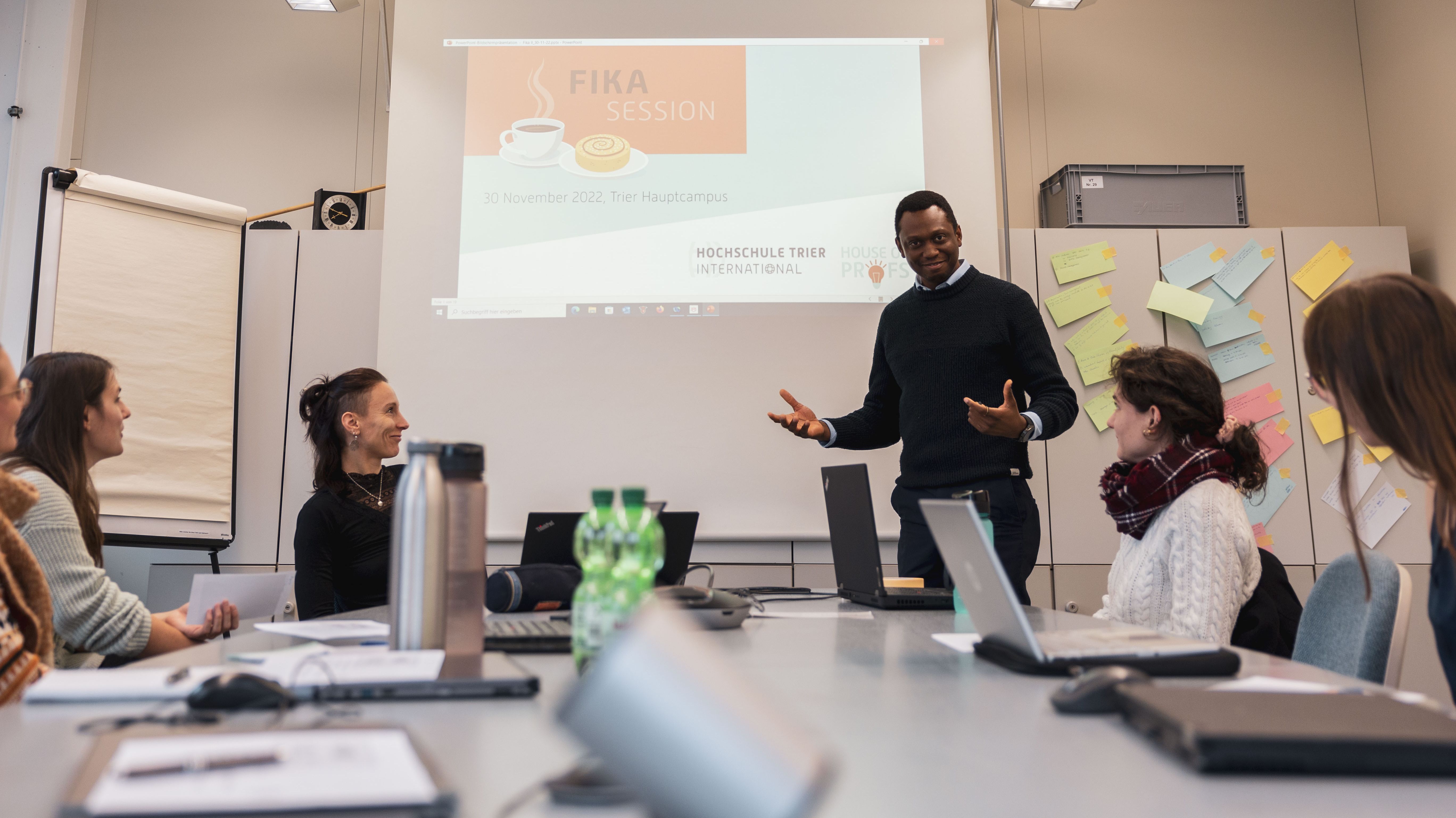The Fika break, inspired by the Swedish tradition of a break with coffee and pastries, is central to the interdisciplinary networking of doctoral students across the university. It serves as a platform for engaging in scientific exchange across different disciplines. Here, presentation techniques, scientific communication, and discussion culture are practiced and reflected upon in a relaxed atmosphere. This initiative is from Trier University International.