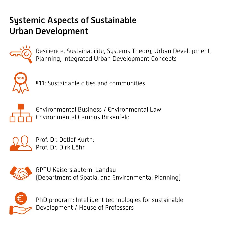 After completing my Master's degree at the Environmental Campus Birkenfeld in "Business Administration and Engineering" in the field of environmental planning/environmental engineering and my Master's thesis in the field of systemic sustainability discourse, I decided to deepen my scientific foundation in the field of systems theory and start a doctorate in 2022 after a transitional period in which I became clear about my professional goals and personal wishes and was able to grow as a person.The RPTU Kaiserslautern - Department of Spatial and Environmental Planning, in the form of my doctoral supervisor Prof. Dr. Detlef Kurth, thankfully gives me the opportunity to apply my research interests to the field of sustainable urban development planning. With Prof. Dr. Dirk Löhr, I was able to gain an outstanding professor from the Environmental Campus as my second supervisor, who also frequently propagates the systems view and is increasingly coming into contact with urban development as part of his research activities on land policy.
