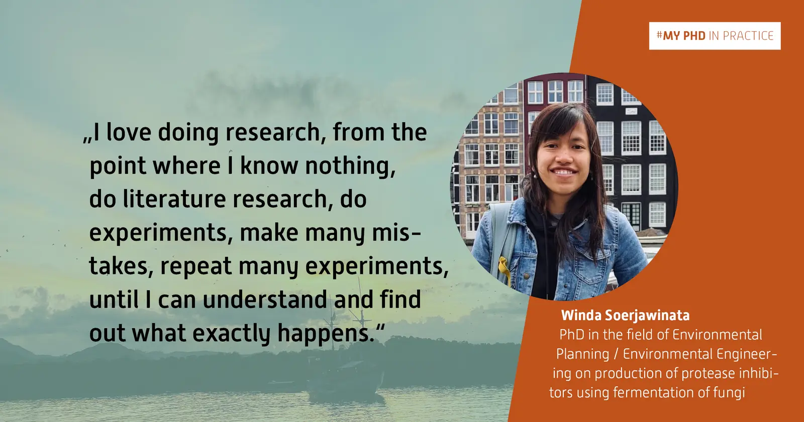 I did my Bachelor in Biotechnology in Indonesia and Master study in Food Microbiology and Biotechnology at the Unviersity of Hohenheim in Stuttgart. For my Master Thesis I worked intensively in molecular biology, microbiology field as well as enzyme technology, which also became my personal interest afterwards. Then, I got an opportunity to widen my knowledge in bioprocess engineering field for my PhD, where I focus on the optimization of bioreactor cultivation of fungi. Having natural science as background it was pretty challenging in the beginning for me to enter a new field. But with the support I got from my colleagues since the beginning of my PhD, I can overcome it and get settled in this new field. So far, my plan after PhD is to go to Pharmaceutical Industry as scientist. But let`s see what life has in store for me :)