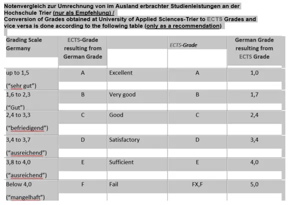 The conversion of grades is complex due to different grading systems, the European Credit Transfer System as shown here is recommended: