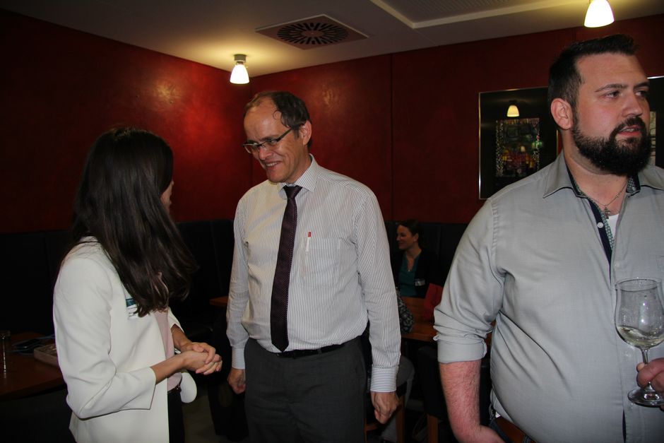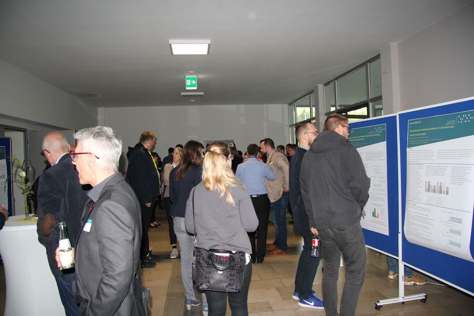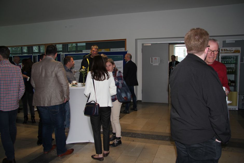 In den Pausen gab es dann einen regen fachlichen Informationsaustausch mit den Referenten insbesondere zu den vorgestellten Geschäftsmodellen und Prognosen in die Zukunft. Viele Gäste freuten sich, wieder an der Hochschule zu sein und Ehemalige Kommilitonen und Mitarbeiter der Fachrichtung zu treffen. Die Pausen gaben zudem wieder die Möglichkeit sich in der Poster Ausstellung zu Bachelor- und Masterarbeiten mit Industriepartnern und wissenschaftlichen Einrichtungen zu informieren.