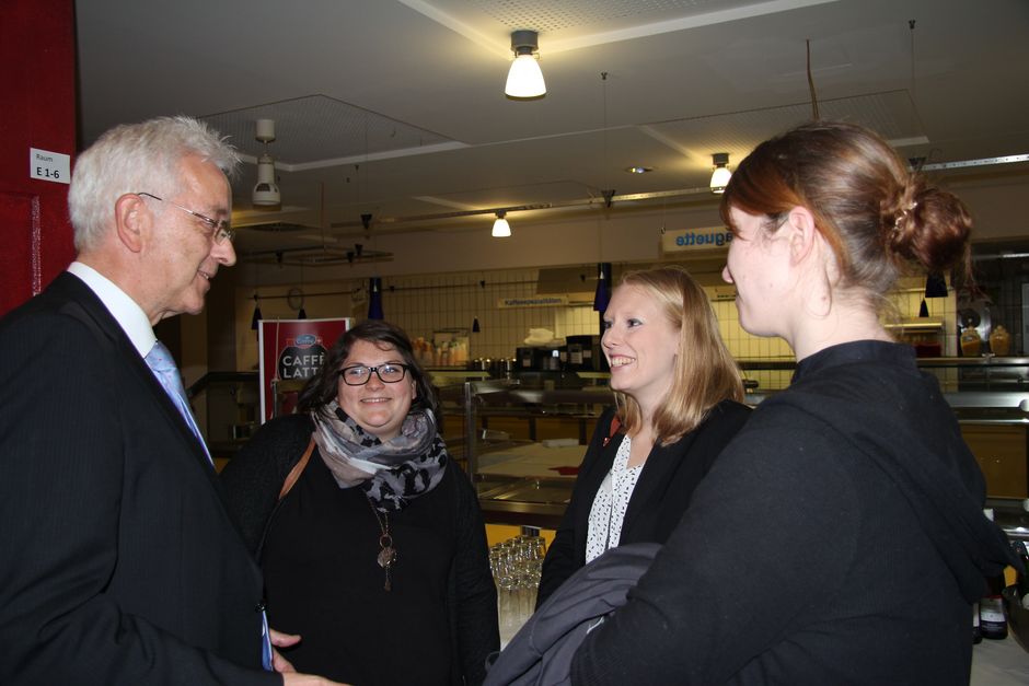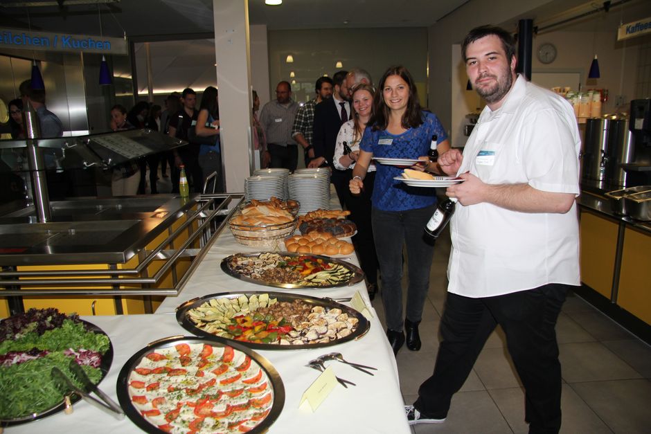 Am späten Nachmittag nahmen sehr viele Gäste von dem Angebot Gebrauch, die Labore zu besichtigen und sich über die Ausstattung und Projekte der Fachrichtung zu informieren. Direkt im Anschluss erfolgte der Sektempfang in der Cafeteria und wenig später wurde schon das Buffet eröffnet.
