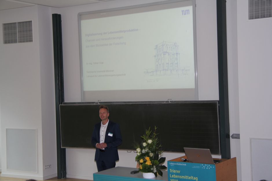 Am Nachmittag wurden in den Vorträgen exemplarisch Digitalisierungsmöglichkeiten bei einer Getränkeabfülllinie nach dem Industrie 4.0 Standard vorgestellt. Wichtig bei der Digitalisierung ist die Verknüpfung von Hardware und intelligenter Software zu neuen Anwendungsfällen bzw. Gewinnung von neuen Daten, die einen wirtschaftlichen Erfolg ermöglichen. Diese intelligente Verknüpfung von Daten in der Lebensmitteltechnik und Technologie kann bevorzugt von Technologen und Verfahrenstechnikern erfolgen muss. Nötig sind bei aller Digitalisierung Euphorie auch die Validität der Daten zu sichern.