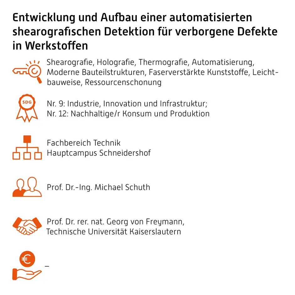 Dank der Weiterentwicklung der räumlichen Phasenschiebe-Shearografie sind Messungen erstmals auch unter vergleichsweise rauen Umgebungsbedingungen möglich. Obwohl interferometrische Messverfahren schon lange im Bereich der zerstörungsfreien Prüfung eingesetzt werden, besteht aufgrund der rasanten Fortschritte in der Kamera- und Lasertechnik noch immer ein sehr hohes Forschungspotenzial.