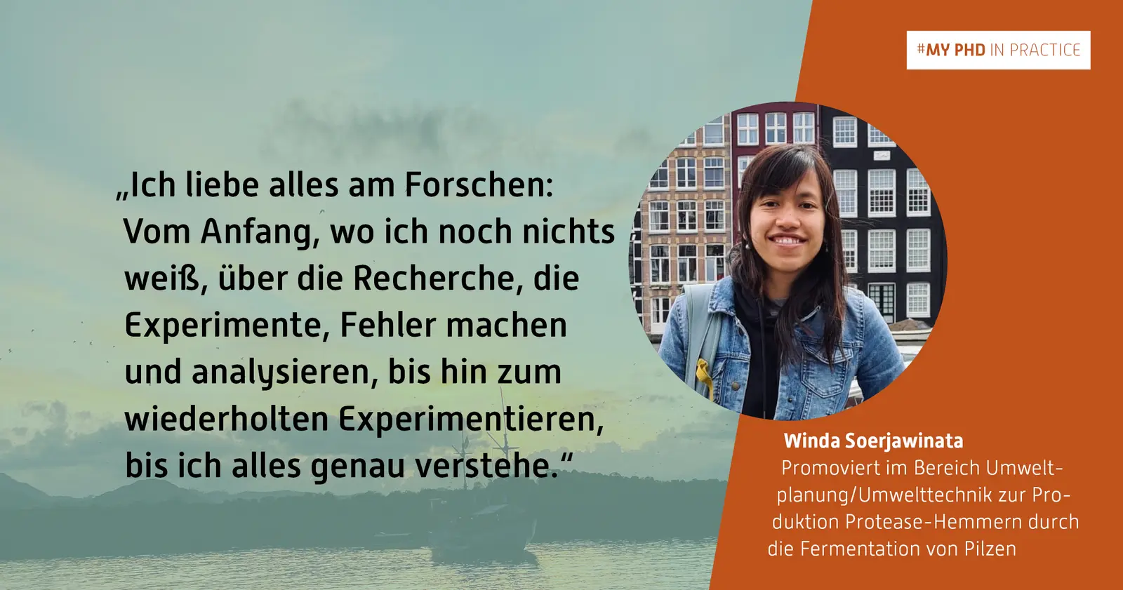 Ich habe meinen Bachelor in Biotechnologie in Indonesien und meinen Master in Lebensmittelmikrobiologie und Biotechnologie an der Universität Hohenheim in Stuttgart gemacht. Für meine Masterarbeit habe ich mich intensiv mit Molekularbiologie, Mikrobiologie und Enzymtechnologie beschäftigt, was auch mein persönliches Interesse wurde. Dann hatte ich die Gelegenheit, mein Wissen im Bereich der Bioverfahrenstechnik zu erweitern, wo ich mich in meiner Promotion mit der Optimierung der Bioreaktorkultivierung von Pilzen beschäftigte. Da ich einen naturwissenschaftlichen Hintergrund habe, war es anfangs eine ziemliche Herausforderung für mich, ein neues Gebiet einzutreten. Aber dank der Unterstützung, die ich seit Beginn meiner Doktorarbeit von meinen Kollegen erhalten habe, konnte ich diese Herausforderung überwinden und mich in diesem neuen Bereich zurechtfinden. Bislang ist mein Plan, nach der Promotion als Wissenschaftlerin in der pharmazeutischen Industrie zu arbeiten. Aber mal sehen, was das Leben für mich bereithält :)