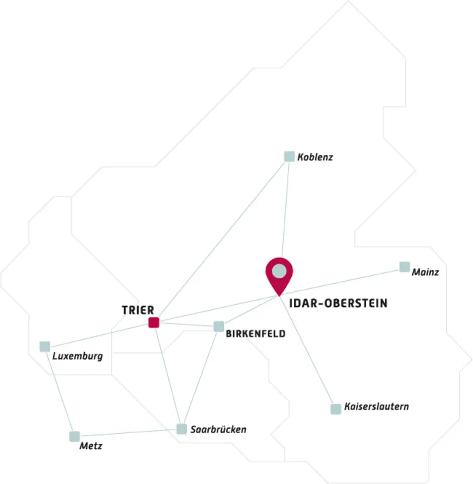 Dort biegen Sie in Richtung Stadtteil Idar ab und folgen ca. 1,5 km der Vorfahrtsstraße. Biegen Sie an der ersten Straße hinter der Polizei rechts ab, Richtung Vollmersbach (Vollmersbachstraße). Der Fachrichtung Edelstein und Schmuckdesign befindet sich in der Berufsbildenden Schule auf der rechten Seite, Hausnummer 53a.
