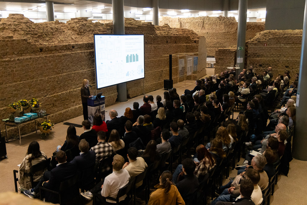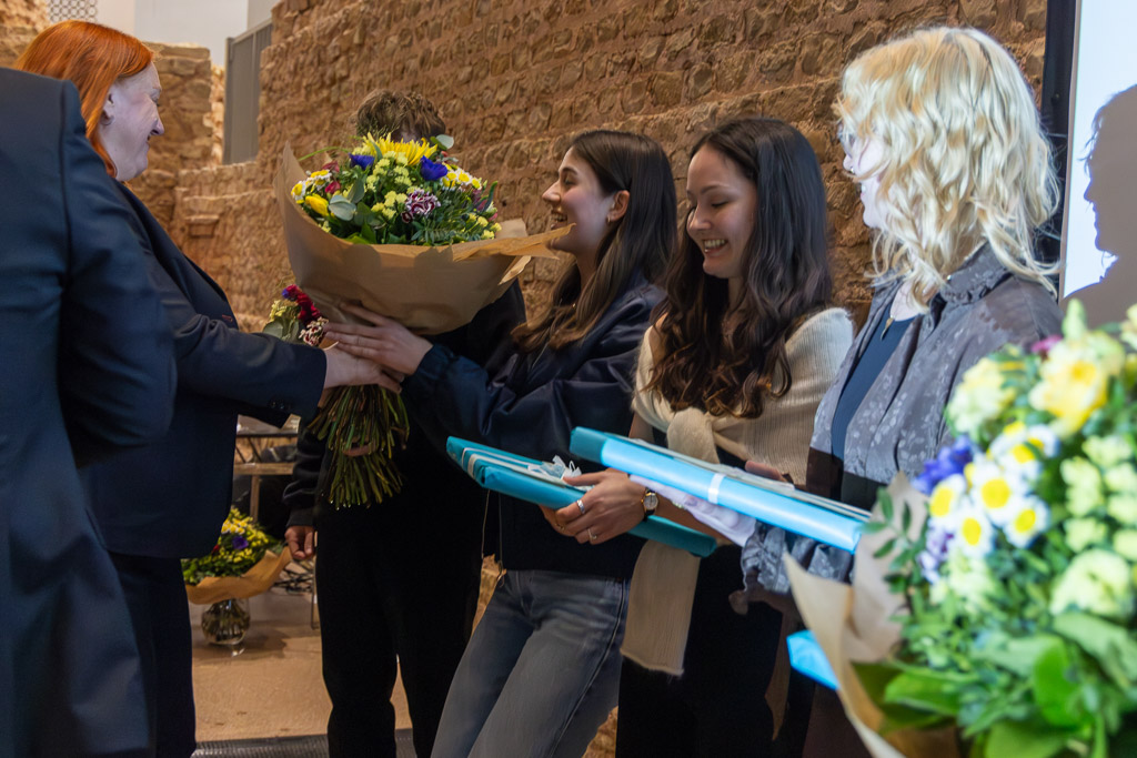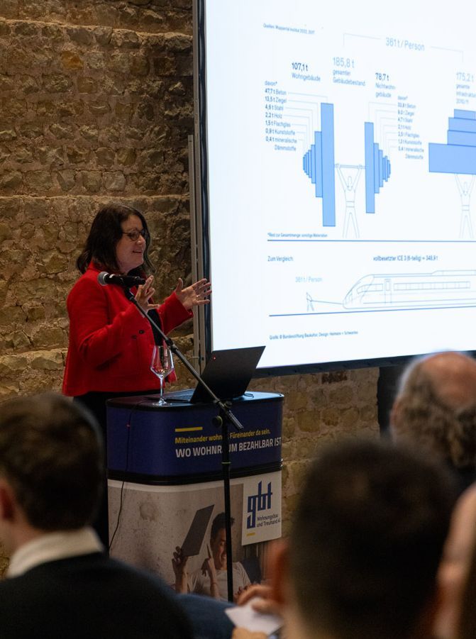 Bei der mit über 200 Besucher*innen gut besuchten Vernissage erläuterten nach Grußworten der Vorständin der gbt, Frau Sybille Jeschonek und des Baudezernenten der Stadt Trier, Herr Dr. Thilo Becker, sowie einem Vortrag von Frau Prof. Petra Riegler-Floors zum Thema „Strategien nachhaltigen Bauens“ fünf Studierende ihre Arbeiten.