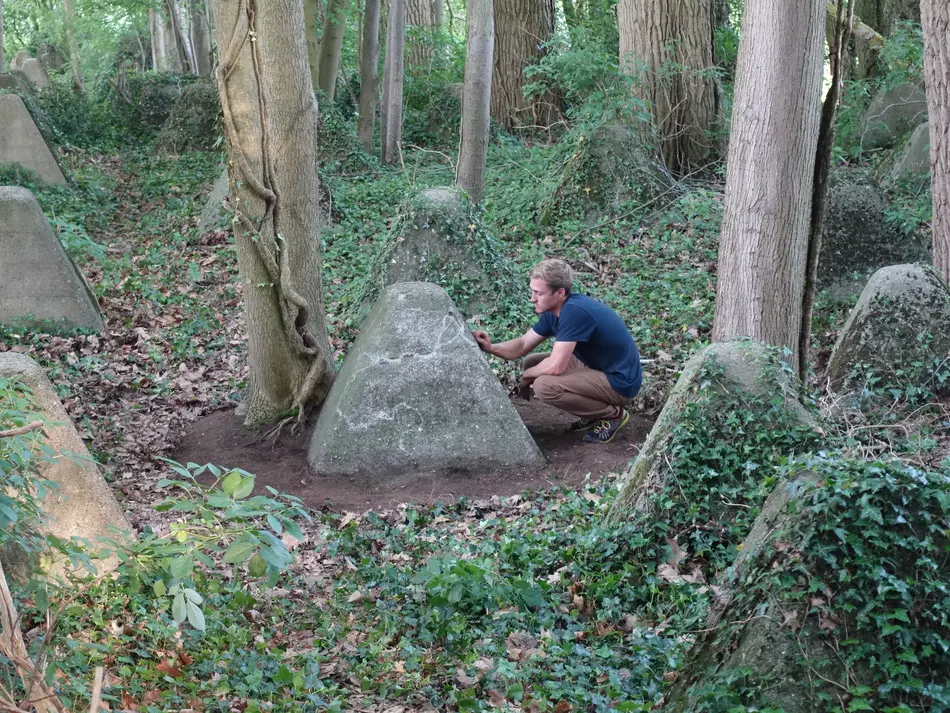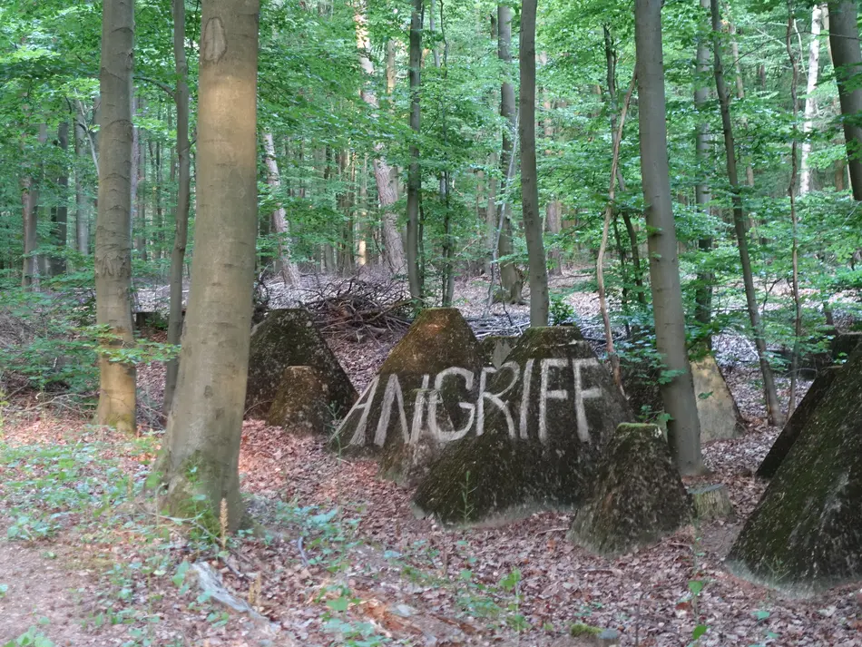 Ausgangspunkt war eine Erkundung der Spuren des ehemaligen Westwalls zwischen Weil am Rhein und Aachen mit einer Gruppe von 10 Studierenden aus dem Fachbereich Gestaltung im Mai 2017. Begleitet wurde sie vom SWR Redakteur Herrn Manfred Ladwig und seinem Team (Kamera, Ton, Drohne). Zum Abschluss dieser Erkundung haben sich die Studierenden an jeweils von ihnen selbst ausgewählten Orten künstlerisch mit diesem Erbe befasst. Vor Ort sind LandArt - Projekte entstanden, mit denen sich die Studierenden nicht nur zu den historischen Ereignissen in der Landschaft positionieren. Sie haben an diesem Bauwerk ihre eigenen Spuren hinterlassen – ein persönliches Statement.
