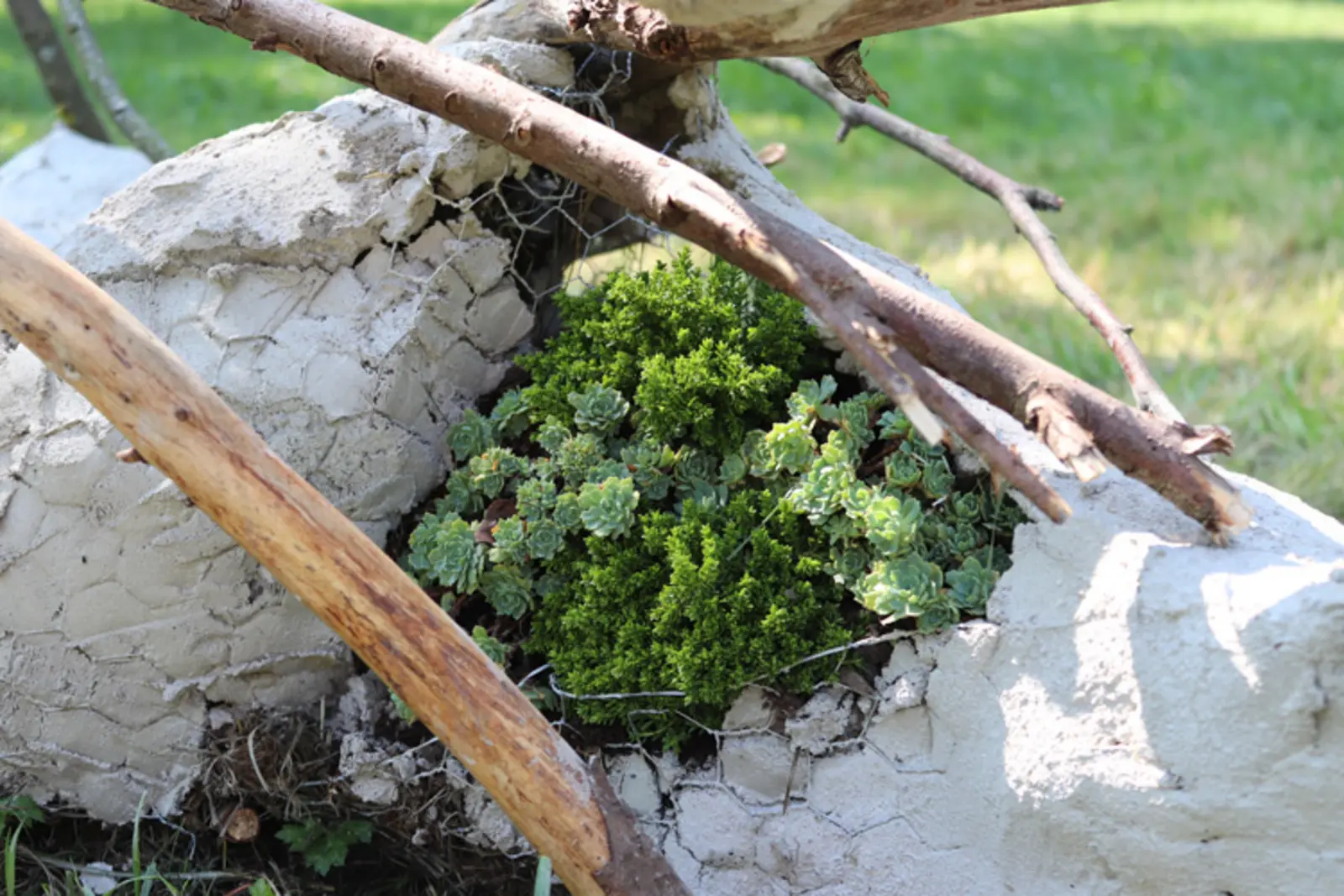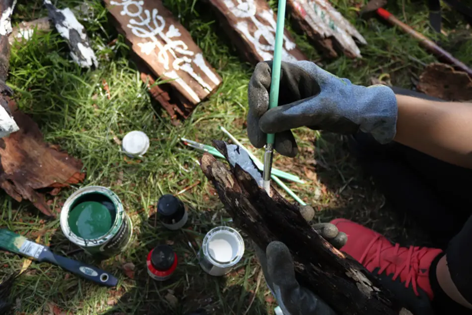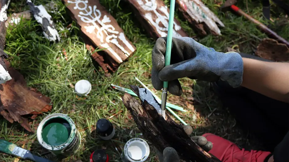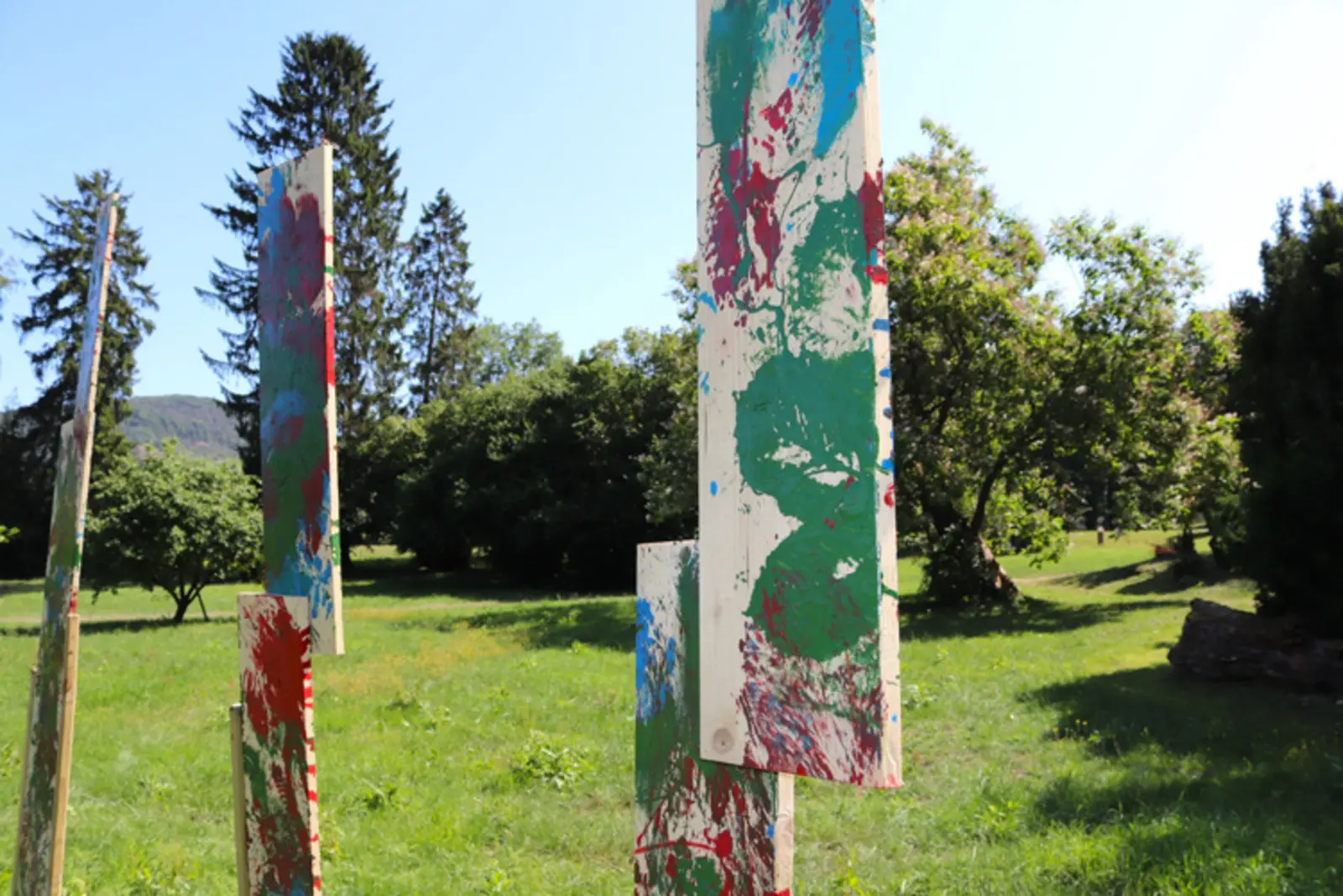 Wie auch im letzten Jahr wurden überwiegend Naturmaterialien, die vor Ort und in den umliegenden Wäldern gesammelt wurden, verwendet. Die Werke sind von nun an im Park ausgestellt, bis die Natur Sie irgendwann wieder komplett vereinnahmen wird.