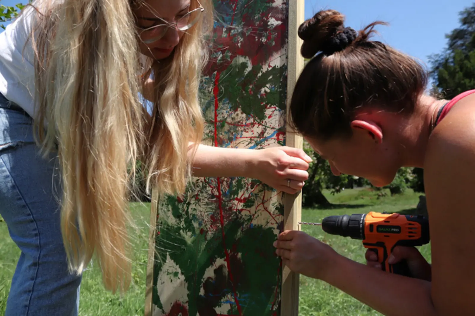 ihre Kunstinstallationen im Park von Schloss Burg Namedy zu erbauen und die Gastfreundschaft der Familie von Hohenzollern zu genießen.