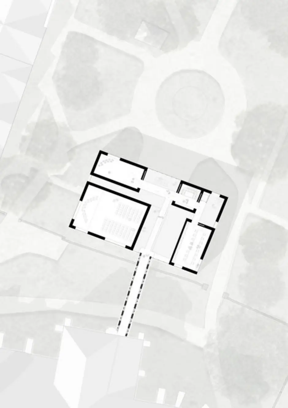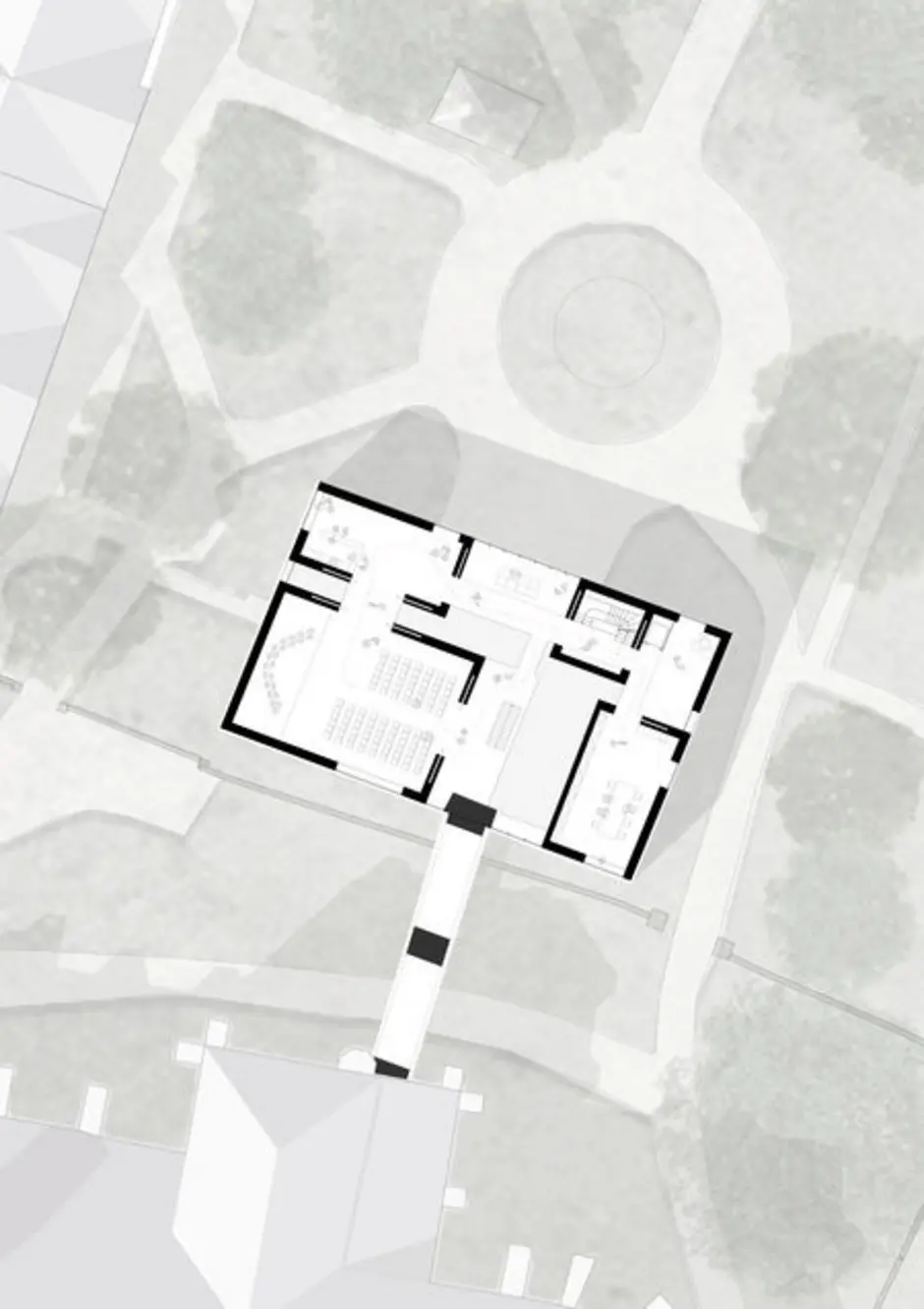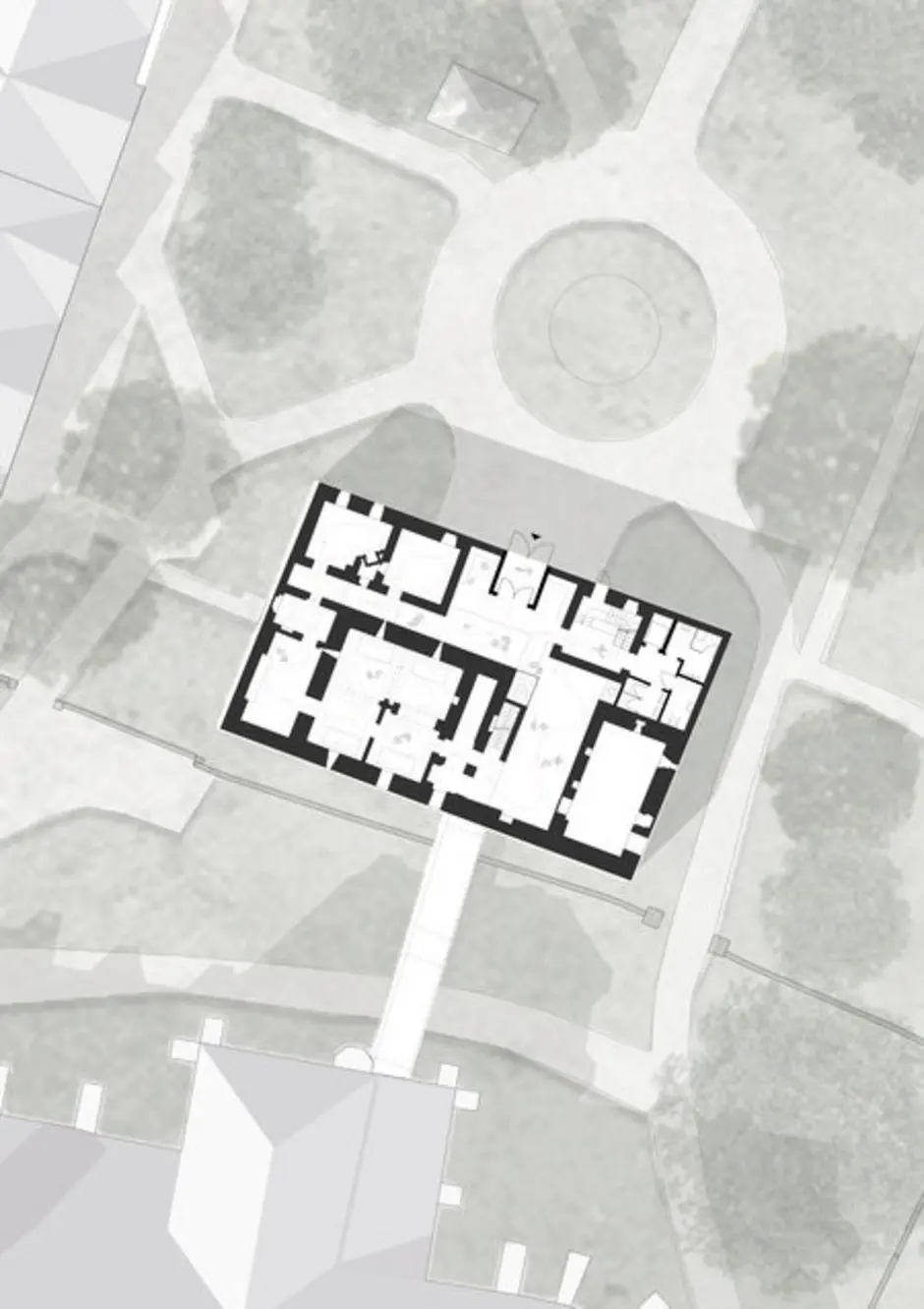 Das neue Gebäude soll auf der vorhandenen Schlossplatte des ehemaligen Herrenhauses realisiert werden. Die Schlossplatte ist über einen Bogengang mit der Kirche verbunden, dieser soll in der Planung auch mit einbezogen und wieder nutzbar gemacht werden.