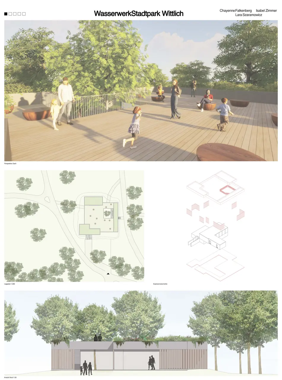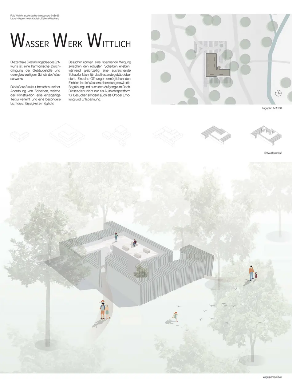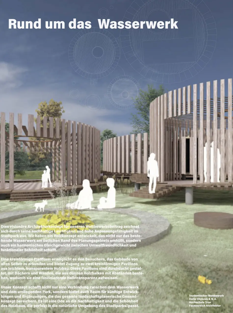 Im Zuge der Erweiterung des Stadtparks in Wittlich wurden Ideen für die Umgestaltung eines kleinen Wasserwerkes gesucht, das sich im bisher nicht zugänglichen Erweiterungsareal befindet. Hierzu hatte die Stadtwerke Wittlich auf Initiative des mit der Sanierung des Stadtparks beauftragten Landschaftsarchitekturbüros BGHplan aus Trier im Sommersemester 2023 einen studentischen Wettbewerb ausgelobt. An diesem haben sich schliesslich vier Teams mit Studierenden aus dem Bachelor- und Masterstudiengang beteiligt.