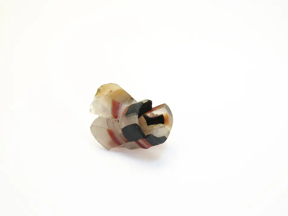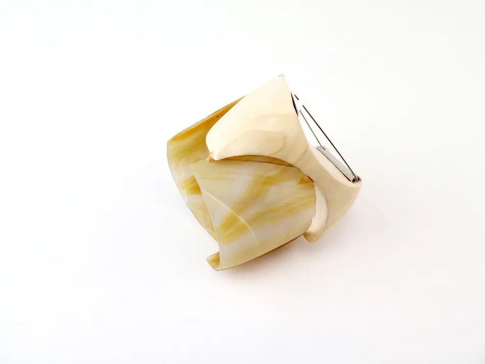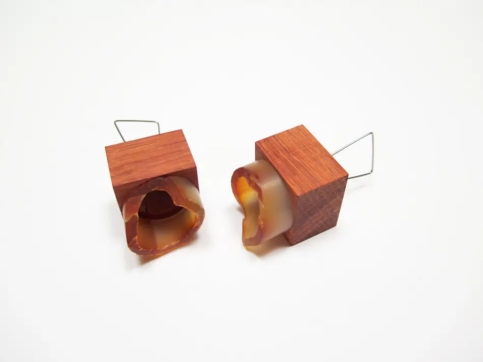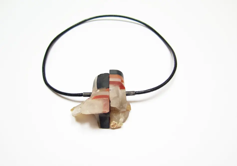 In meinem Arbeitsprozess habe ich hauptsächlich Stein verwandt und versucht, die von mir ausgewählten Materialien mit meinen Emotionen und denen des Trägers in Einklang zu bringen."