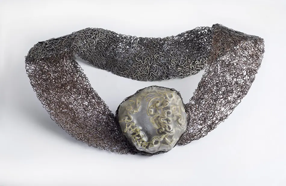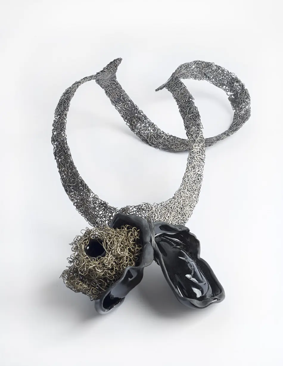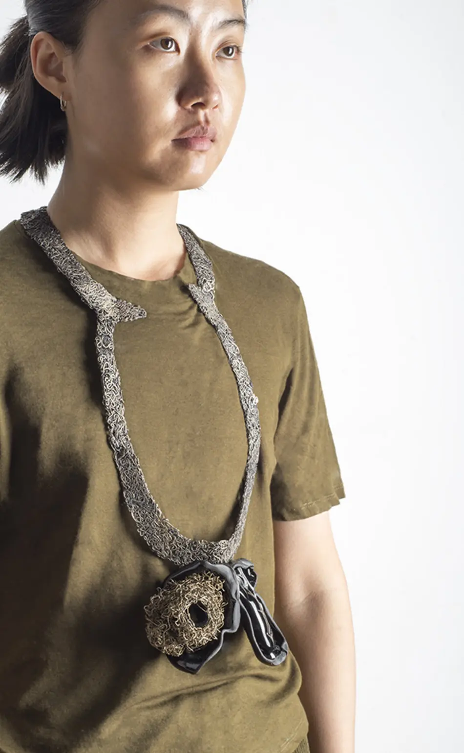 Because I was writing so much about confusion and self-censorship, I became to work with entwined and tangled metall nots, where the mess represents equally: - our understanding of the past when real ends cannot be found or come together anymore. - numerous attempts to take a new route in the naive hope of getting a different result without changing the rules.