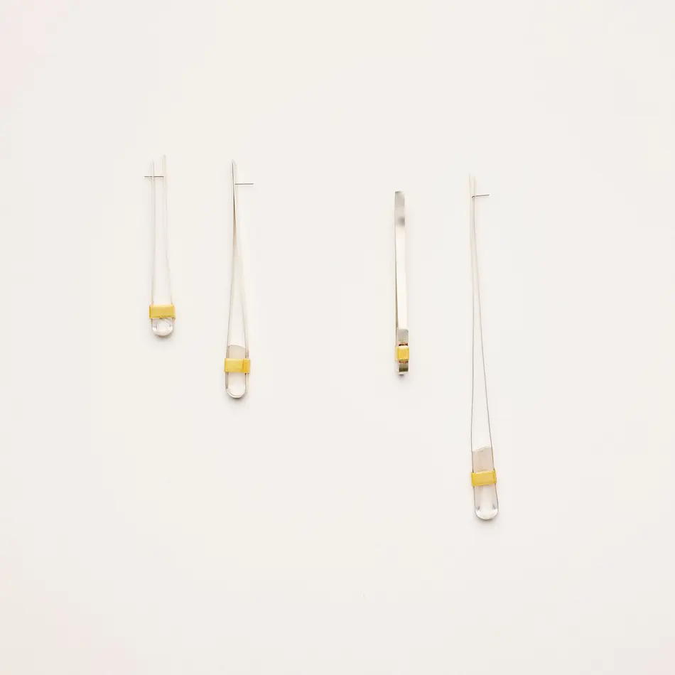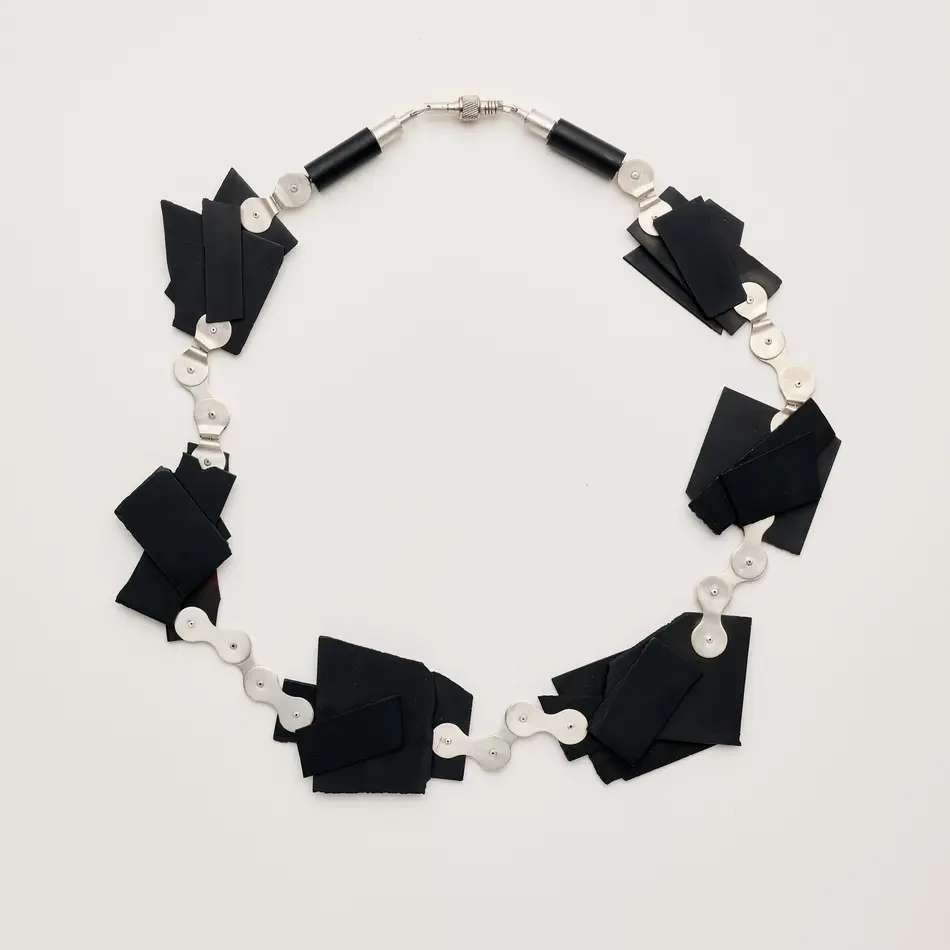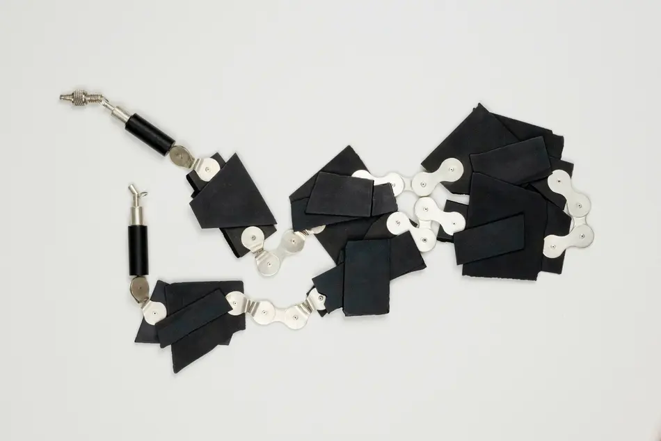 "In the 'Performative Traces' series, I explore themes such as movement, transformation and the traces left behind in the process, as well as my Viennese identity. Central themes include breaking up structures and traditions, questioning norms and values, searching for balance, confronting social hurdles and resistance, and preoccupation with memories. Functions are reconsidered and reinterpreted. My master's thesis research study sheds light on the performative act in the process of jewellery development. This takes us from the trace to the performance and ultimately to the investigation of the jewellery itself. Traces, whether physical or emotional, carry personal or collective memories. These traces are uncontrollable and unique to the individual; they are the result of every interaction, whether it is the trace that our bodies and actions leave on materials, or the trace that materials leave on us.