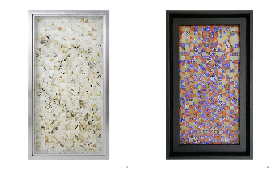 Während die im 19. Jh. in Mode kommenden Landschaftsachate durch die suggestive Kraft ihrer natürlichen bildhaften Strukturen durchaus romantische Träumereien zu inspirieren vermochten, erlebte die Kunst des Commesso erst in den 1960er/70er Jahren im Frühwerk von Bernd Munsteiner, seinen damaligen Achatbildern, ihre neuzeitliche Blüte. Munsteiner zeigte als erster mit seinen abstrakten Bildern aus Achaten, dass das Genre mit dem Ende der italienischen Fürstenhöfe in der Spätrenaissance und dem Barock noch nicht seinen künstlerischen Zenit erreicht und zum Abschluss ihrer gestalterischen Möglichkeiten gekommen war. Munsteiner verfolgte diesen Weg allerdings über Jahrzehnte nicht weiter und wandte sich vor allen der skulpturalen Bearbeitung transparenter Steine zu in einem Lebenswerk, das die Gestaltung von Edelsteinen im globalen Maßstab beeinflussen sollte. Erst vor etwas mehr als einem halben Jahrzehnt kehrte Munsteiner im Kontext der Arbeit an zwei Kirchenfenstern – einer Gemeinschaftsarbeit mit seinem Sohn Tom für die ev. Gemeindekirche in Stipshausen - zu seinen Anfängen mit den Achatbildern zurück. Zwei dieser Bilder sind in der Ausstellung zu sehen. Munsteiners frühe Achatbilder könnte man als eine Transformation der romantischen Idee des Landschaftsachats in die Abstraktion verstehen, in der das Bild zum Assoziieren verleitet und damit sich für den Betrachter in eine Projektionsfläche der eigenen Psyche anbietet, die jüngste, hier ausgestellte Werkgruppe spiegelt Munsteiners Lebenswerk – und damit einen Jahrzehnte währenden praktischen und auch theoretischen Prozess der Auseinandersetzung mit dem Kristall. Das Grundelement bildet in Anlehnung an die „Platonischen Körper“ sind winzige gleichschenklig-rechtwinklige Dreiecke aus Achaten vor allem, aber auch aus einer Vielzahl anderer Steine, die als Commesso zusammengefügt, einerseits eine strenge formale Textur bilden, die symbolische die kristalline Gitterstruktur formieren, aber andererseits auch das kontrastierende formale Gerüst zum dynamischen Wechselspiel von Munsteiners Bildkomposition bilden. Munsteiner erschließt damit einerseits mit der Sprache der Kunst einen Blick auf eine Natur, die sich andererseits dem Betrachter in ihrem besten Schmuck als Kunstwerk der Natur präsentiert. Munsteiner vollzieht damit einen geistigen Wandel im Verhältnis des Künstlers zur Natur: Bei ihm ist Kunst grundsätzlich nicht mehr die Überwindung und Domestizierung von Natur durch ihre Transformation zum Kunstwerk, sondern tritt in der Kunst gewissermaßen in einer Partnerrolle aktiv auf.
