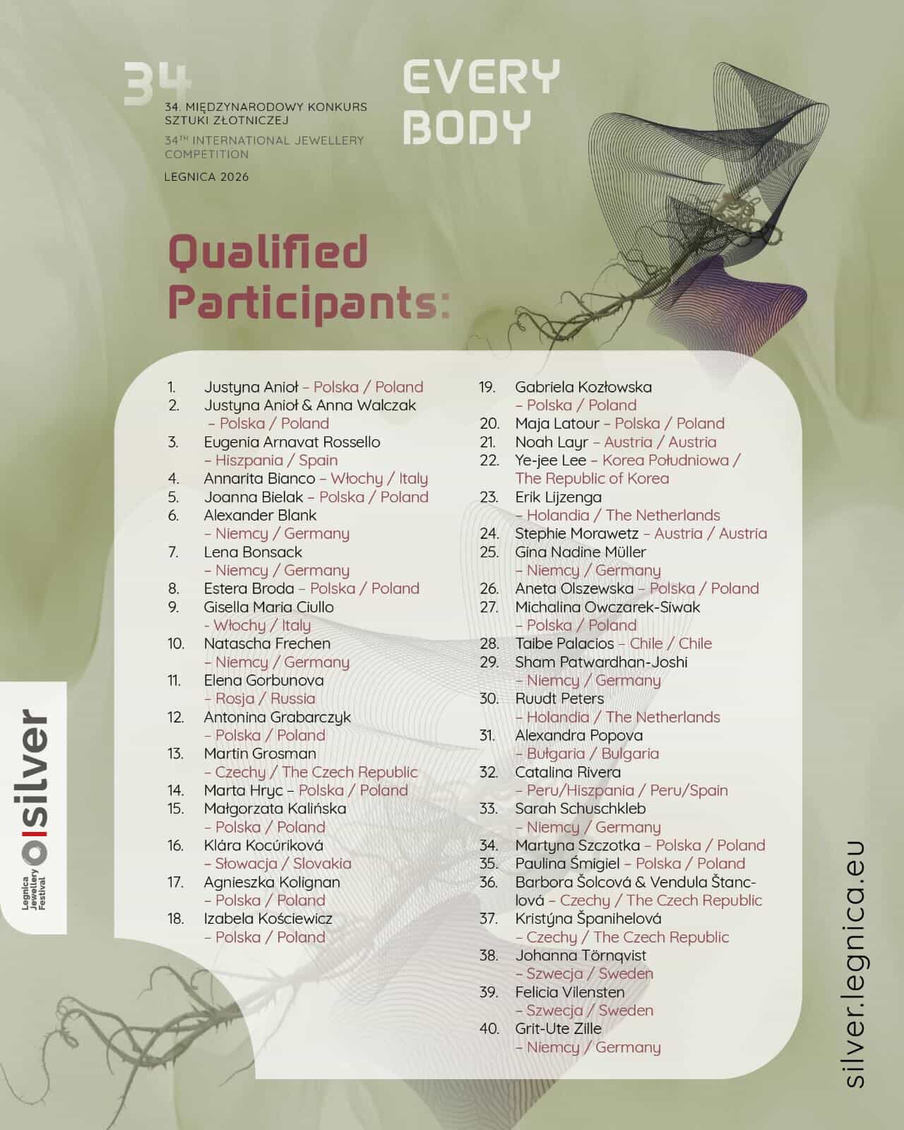 Die Ausstellungseröffnung und Bekanntgabe der Preisträger*innen findet am 8. und 9. Mai 2026 im Rahmen des Legnica Jewellery Festival SILVER statt.