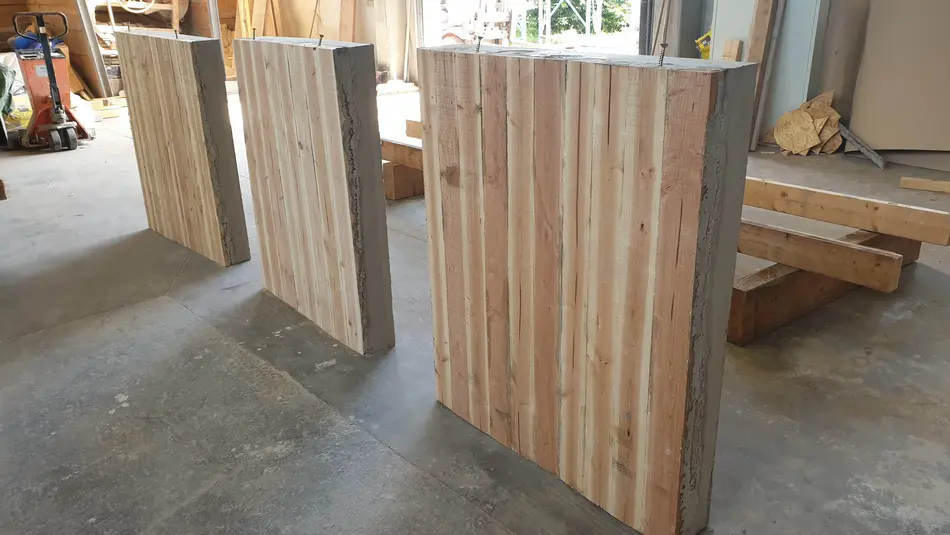 Holz-Beton-Hybridwände. Projektziel ist, bisher minderwertig genutztes Schwachholz (Laubholz und Nadelholz) durch die Entwicklung neuer flächenhafter Bauelemente in Holz-Hybridbauweise für eine zeitgemäße Anwendung in der Architektur verwendbar zu machen. Damit erfahren derartige Sortimente ein ökonomisches und ökologisches „Upgrading“ und tragen so zu der im Koalitionsvertrag RLP vereinbarten erhöhten stofflichen Nutzung von Holz bei.